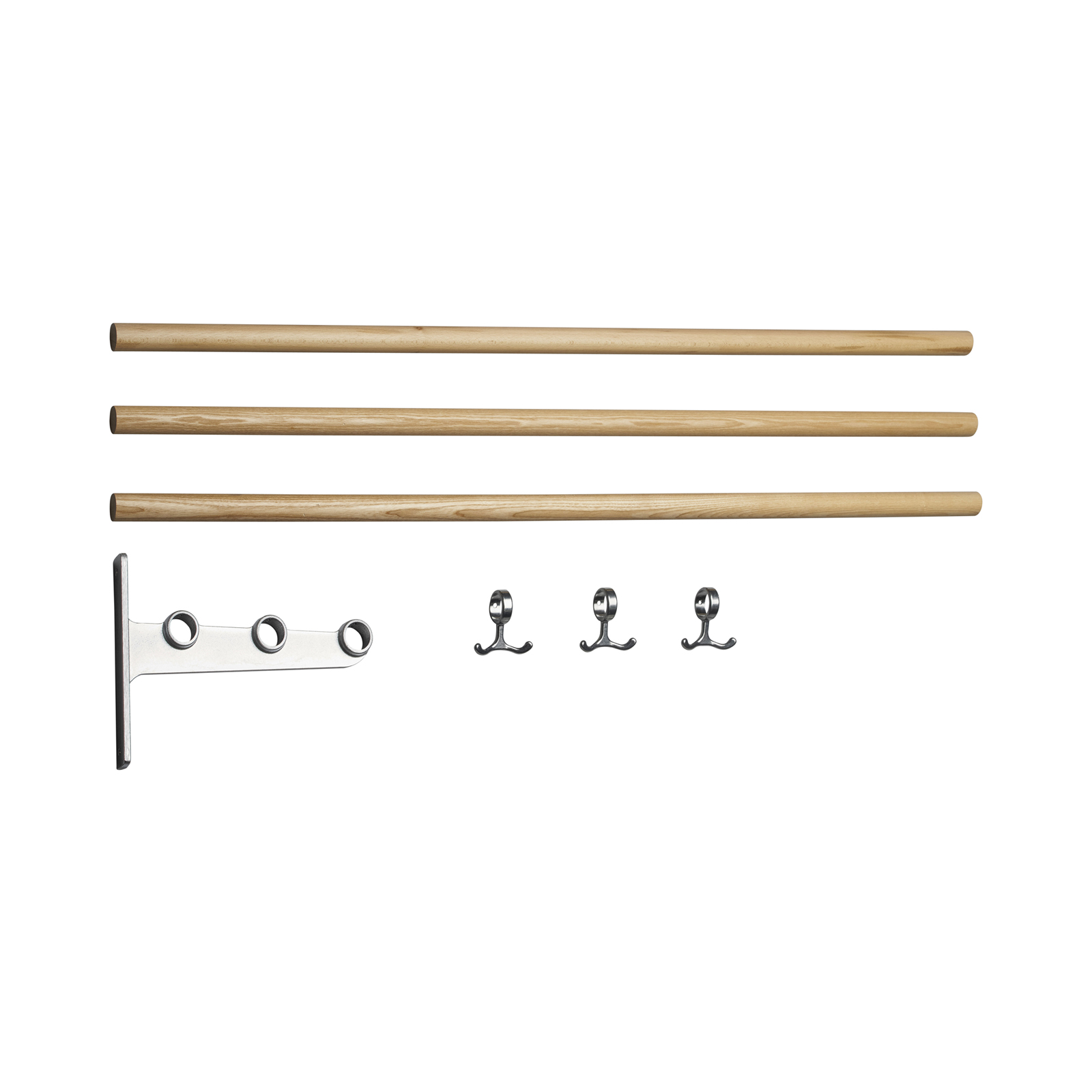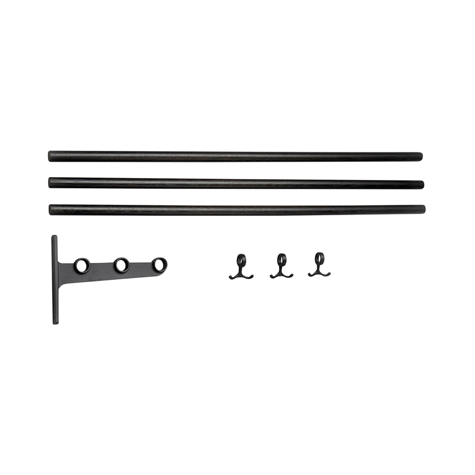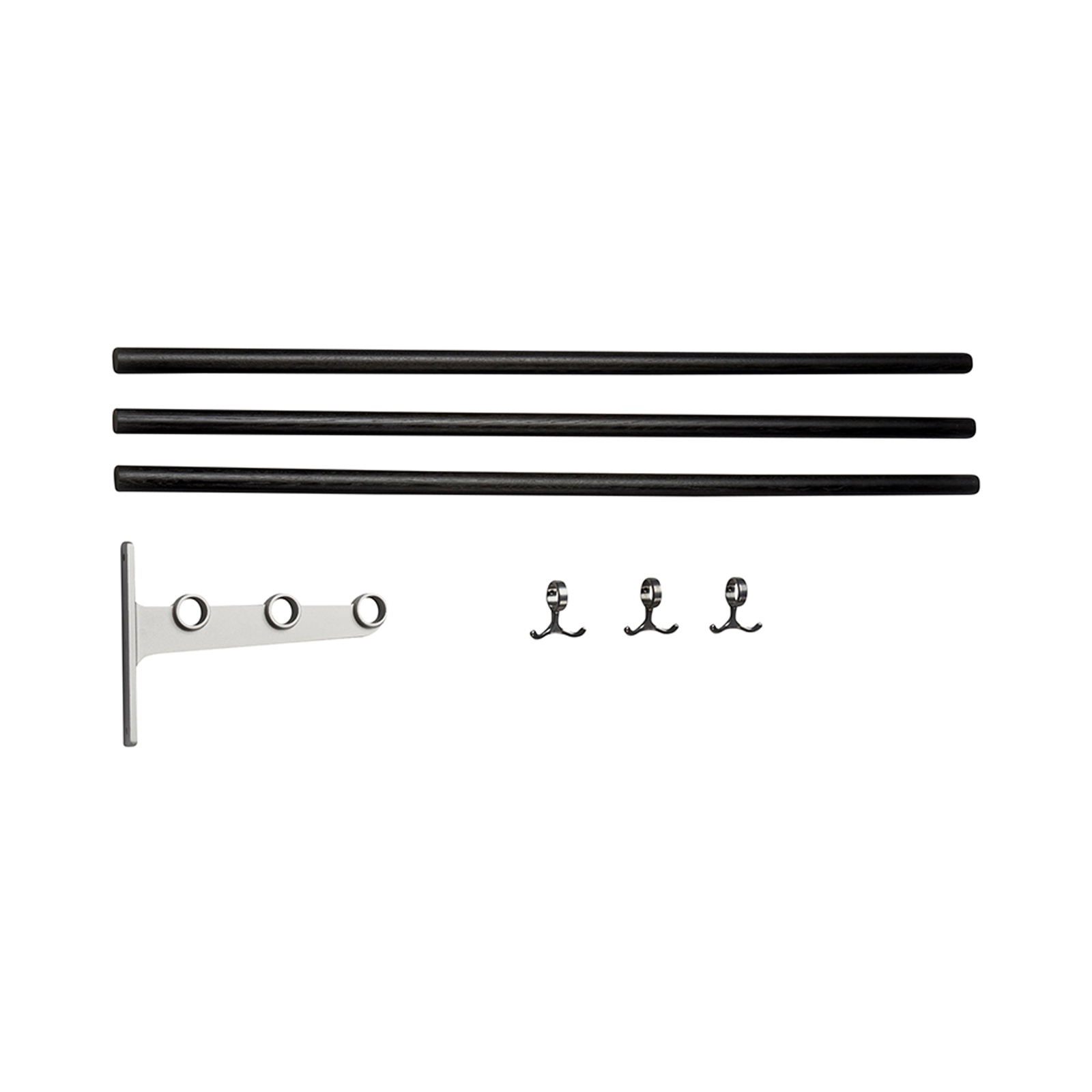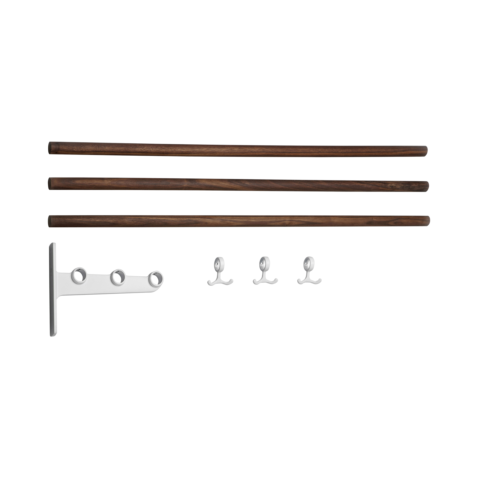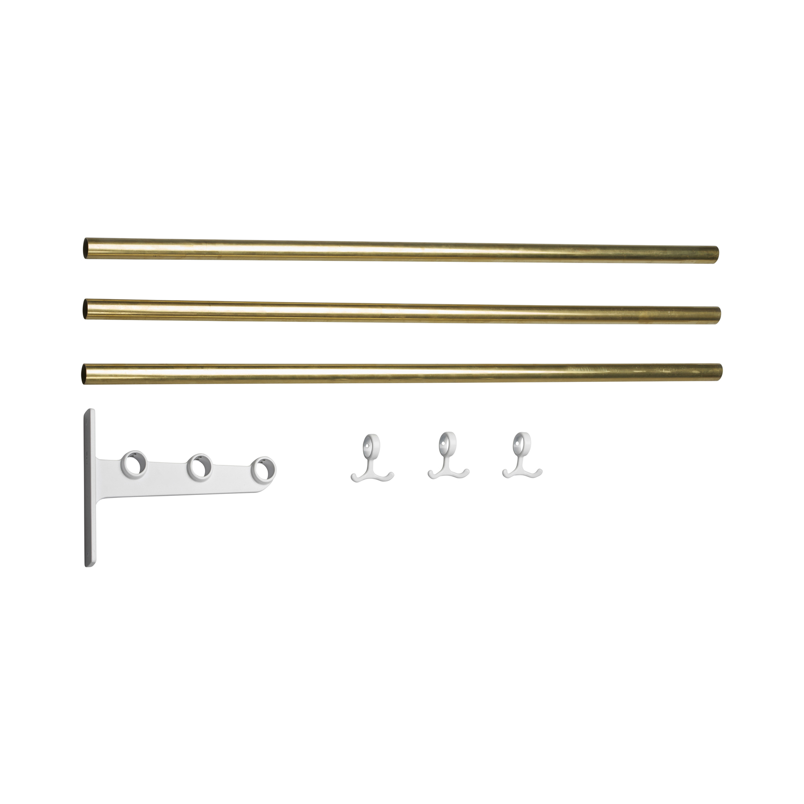 The Nostalgi hat and shoe racks were designed by Gunnar Bolin in 1937. The rack has come and gone over the years, but is now regarded as a classic in the history of Swedish furniture. The brackets are made of recycled aluminium joined by a wooden or aluminium bar. The standard length is one metre, but can be cut to the desired length. Nostalgi can also be extended to any length you like with an extension part comprising a middle bracket, bars and anchor hooks. Three anchor hooks in cast aluminium are included in each package. The metals that are not finished, such as aluminium, brass and copper, come in their raw form, which may vary from one piece to another. Wood can also vary in appearance and the hooks have a glossier surface than the brackets in the aluminum version.