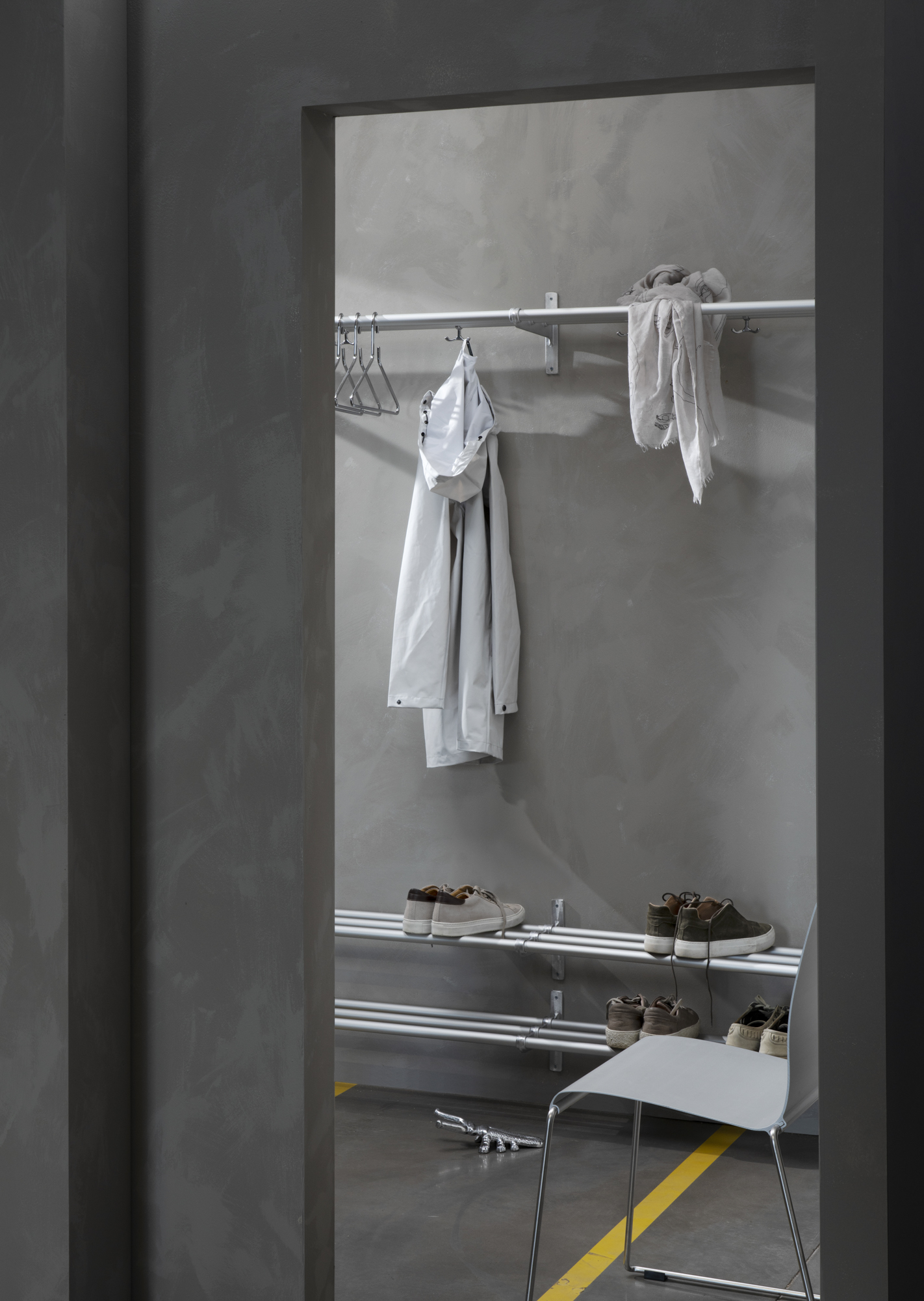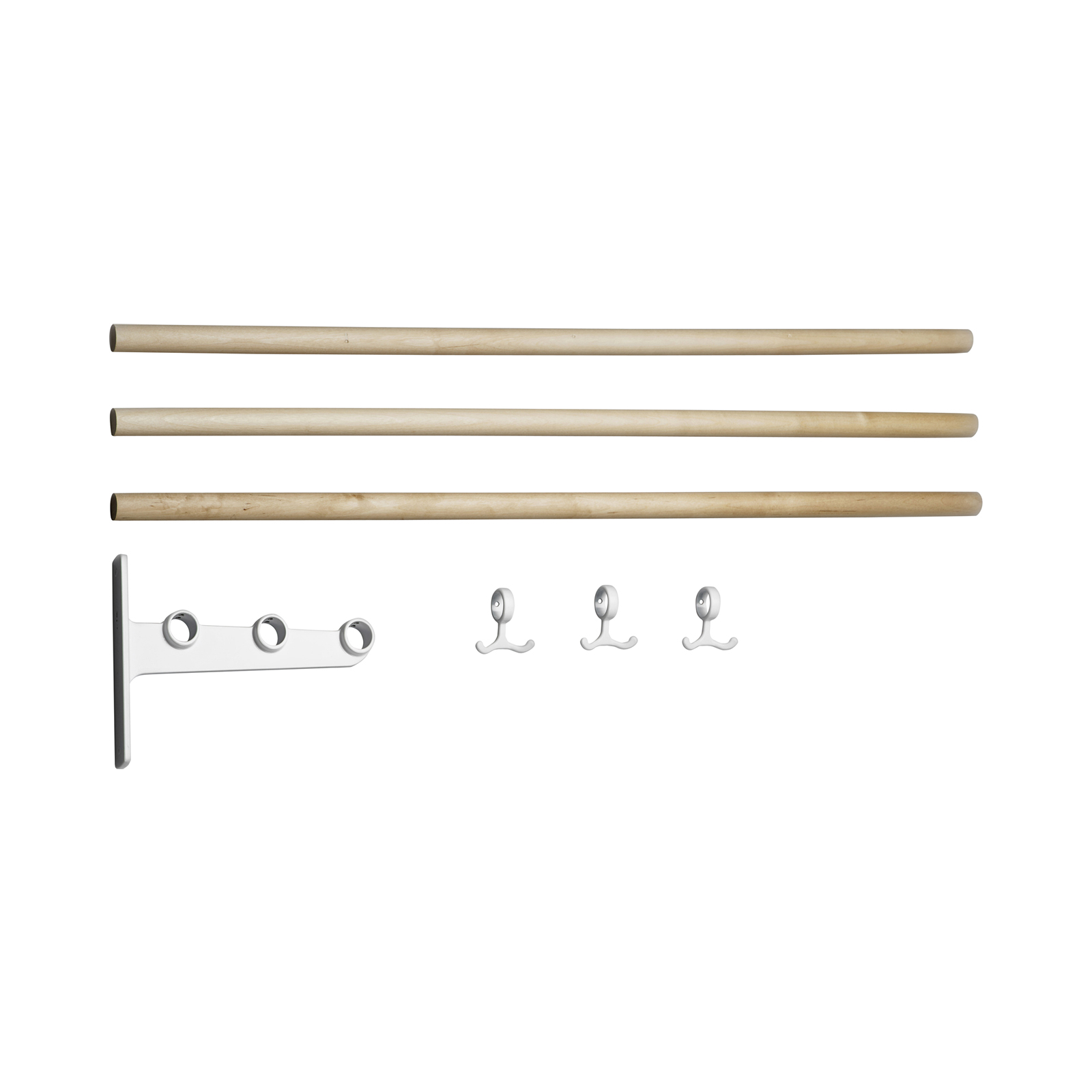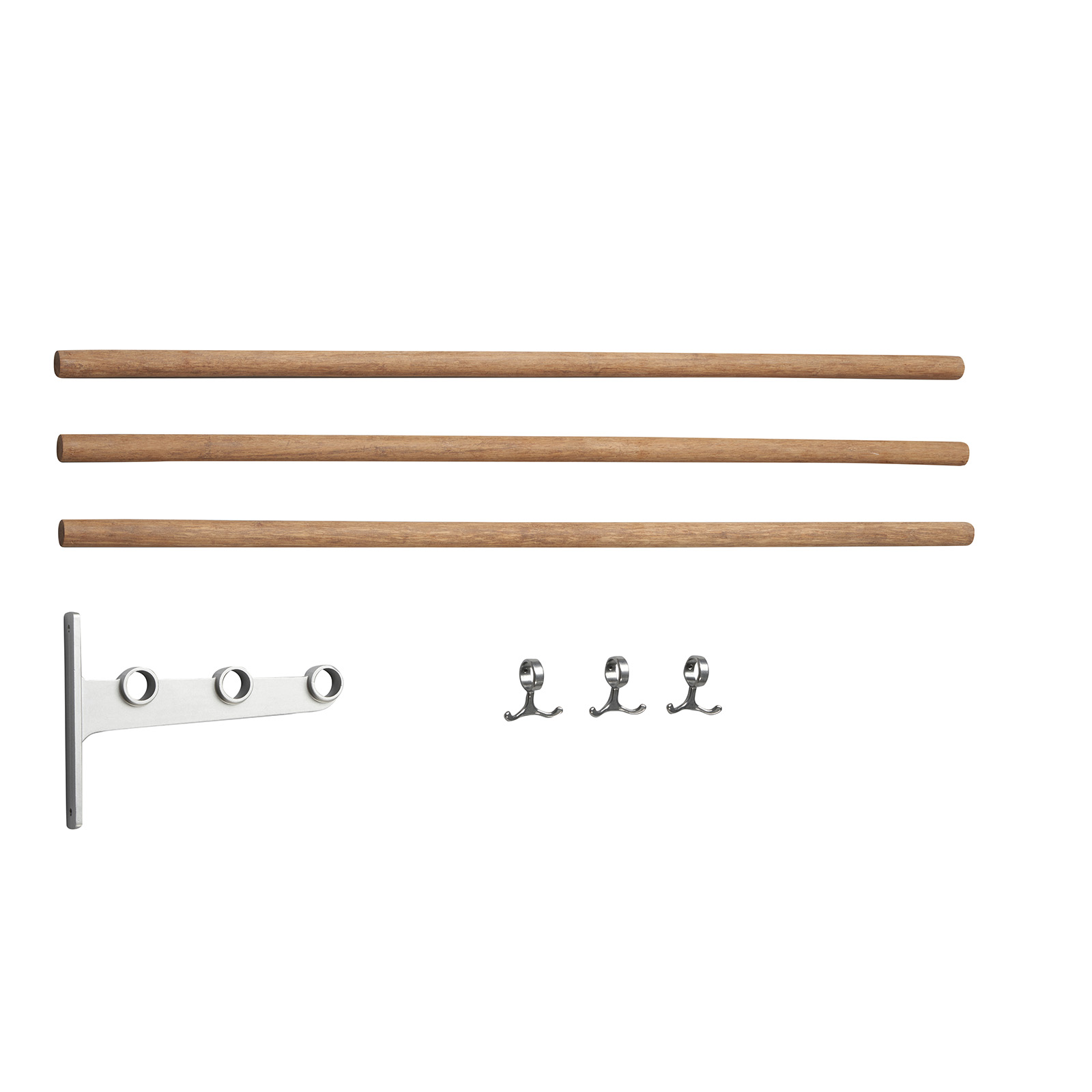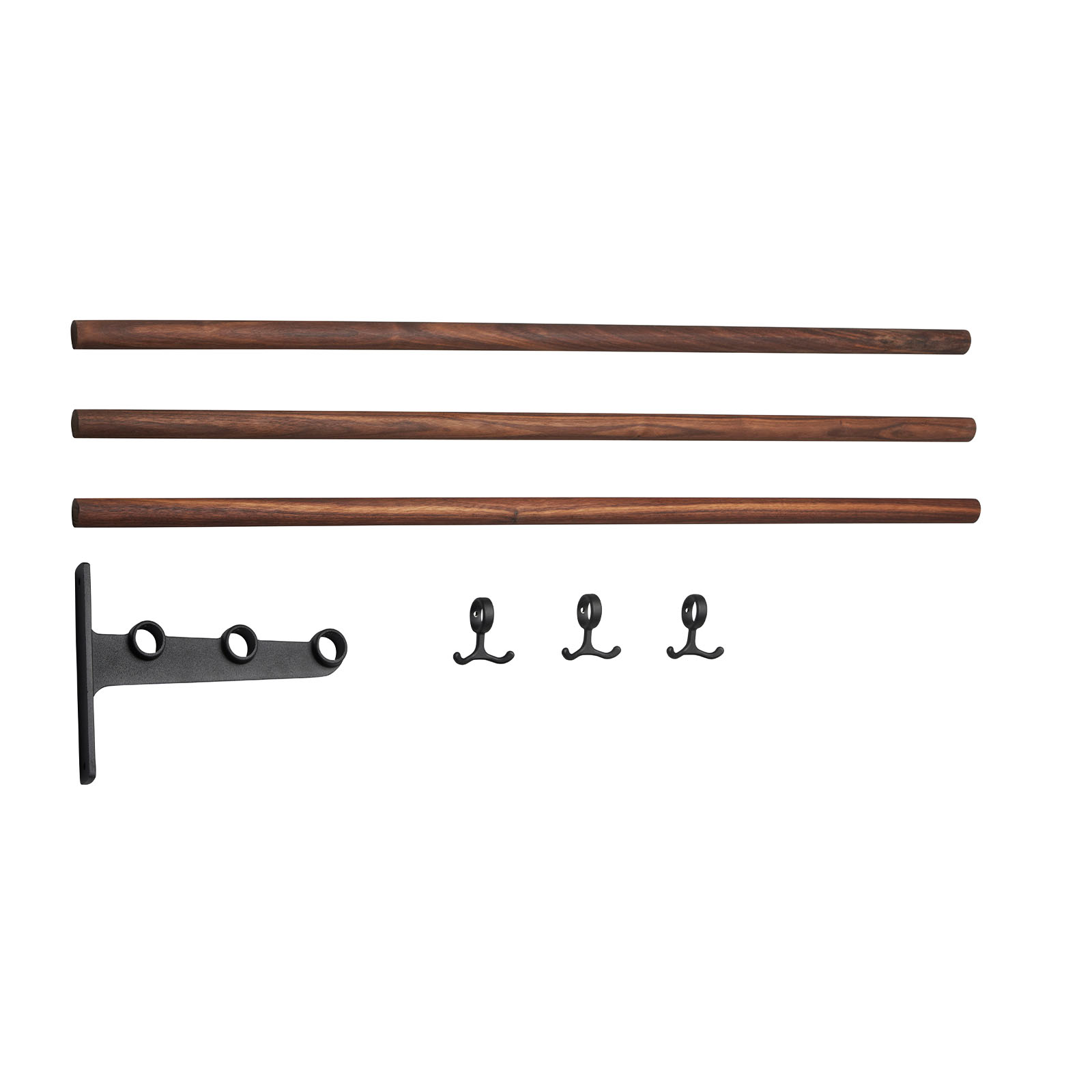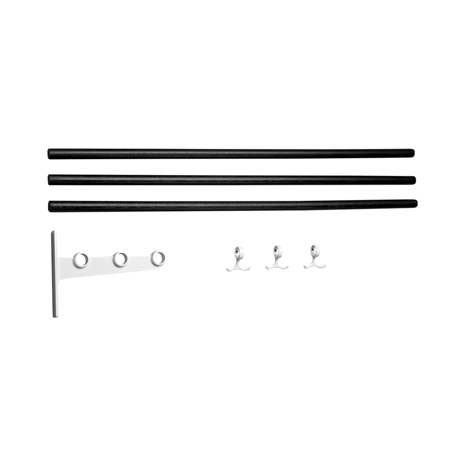 The Nostalgi hat and shoe racks were designed by Gunnar Bolin in 1937. The rack has come and gone over the years, but is now regarded as a classic in the history of Swedish furniture. The brackets are made of recycled aluminium joined by a wooden or aluminium bar. The standard length is one metre, but can be cut to the desired length. Nostalgi can also be extended to any length you like with an extension part comprising a middle bracket, bars and anchor hooks. Three anchor hooks in cast aluminium are included in each package. The metals that are not finished, such as aluminium, brass and copper, come in their raw form, which may vary from one piece to another. Wood can also vary in appearance and the hooks have a glossier surface than the brackets in the aluminum version.