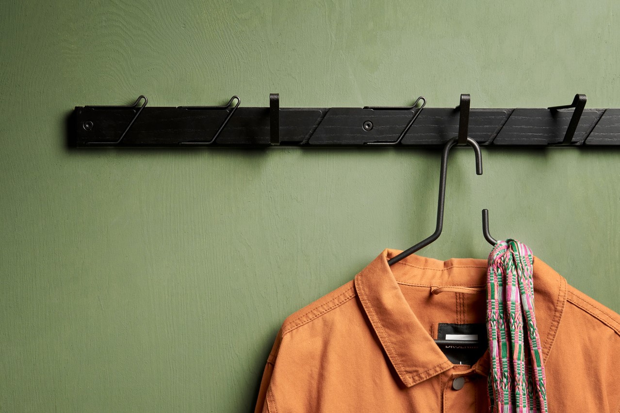 Die Tamburin-Hakenleiste ist ein wahrer Held im Flur – anpassungsfähig an Ihren unmittelbaren Bedarf. Jeder Haken lässt sich mit einer einfachen Geste einklappen und ragt knapp über die Holzleiste hinaus. Das ist das Ergebnis präziser Fertigungstechniken und einer einfachen, aber perfektionierten mechanischen Bewegung. Wählen Sie zwischen drei verschiedenen Breiten für den kleinen oder großen Flur.