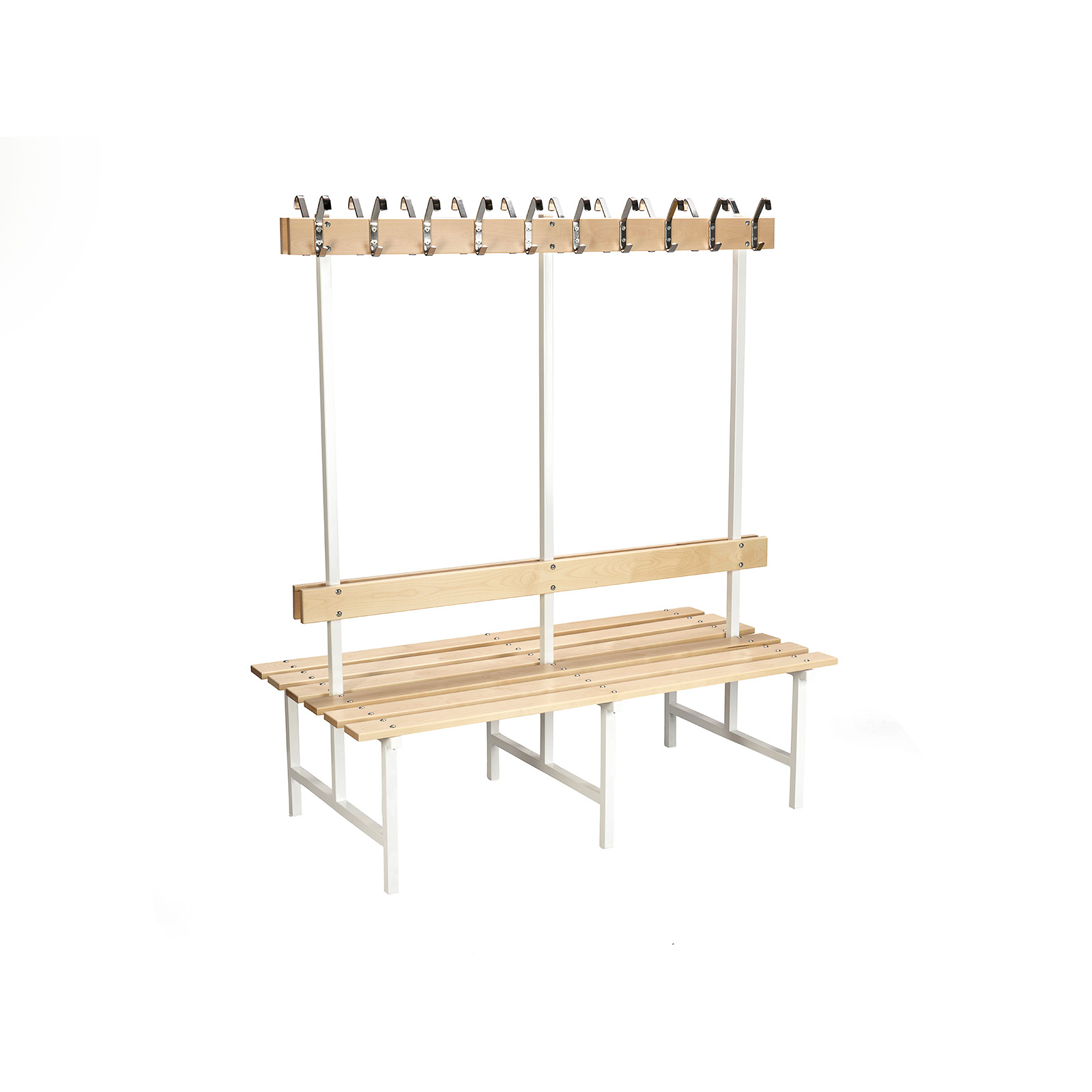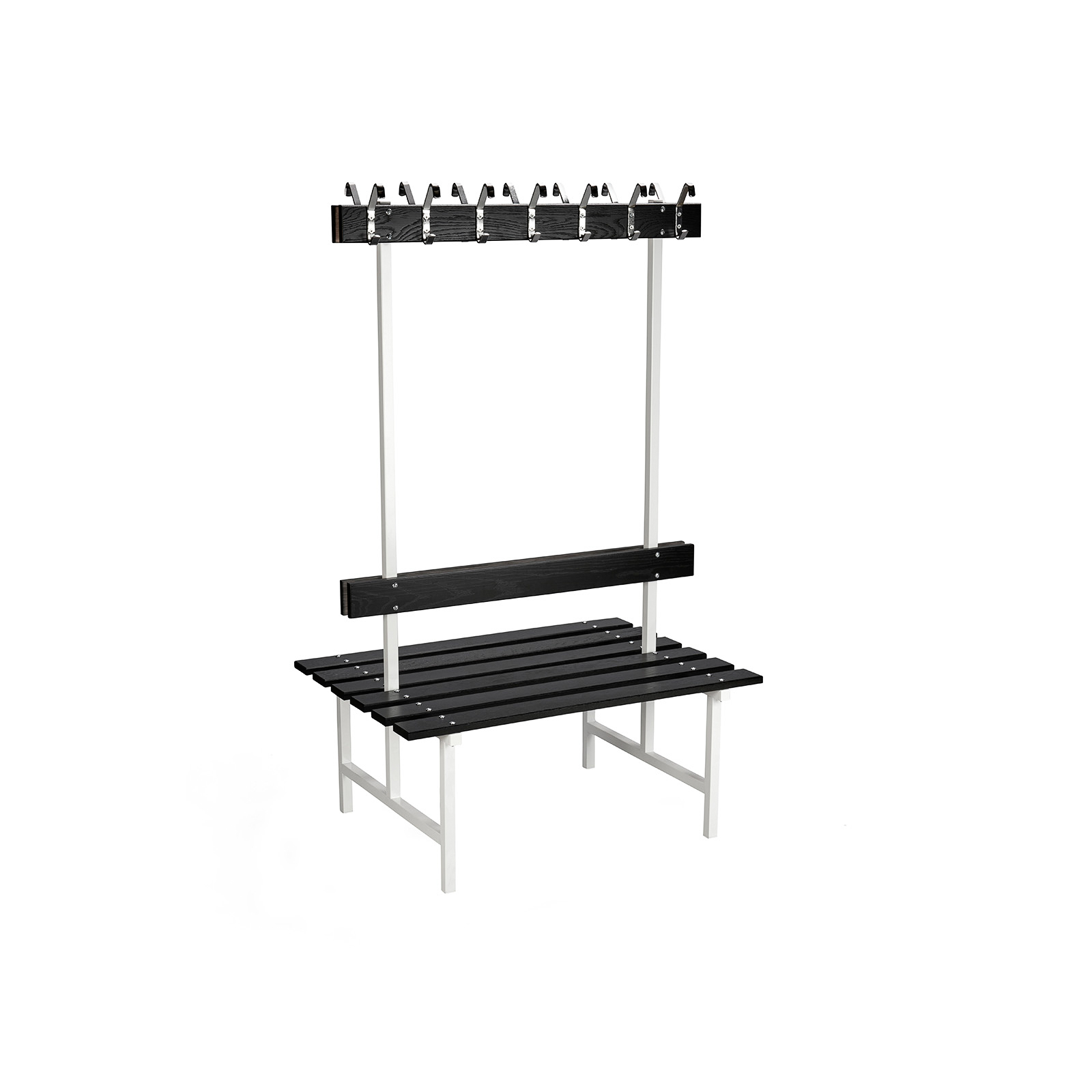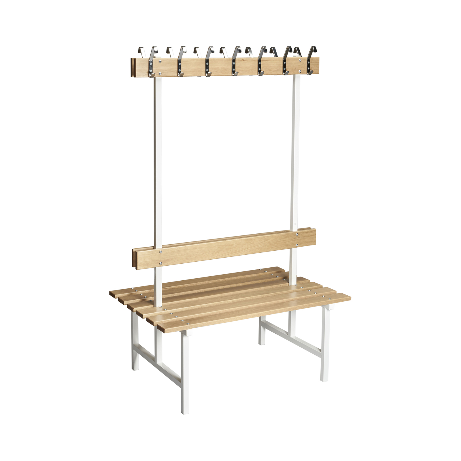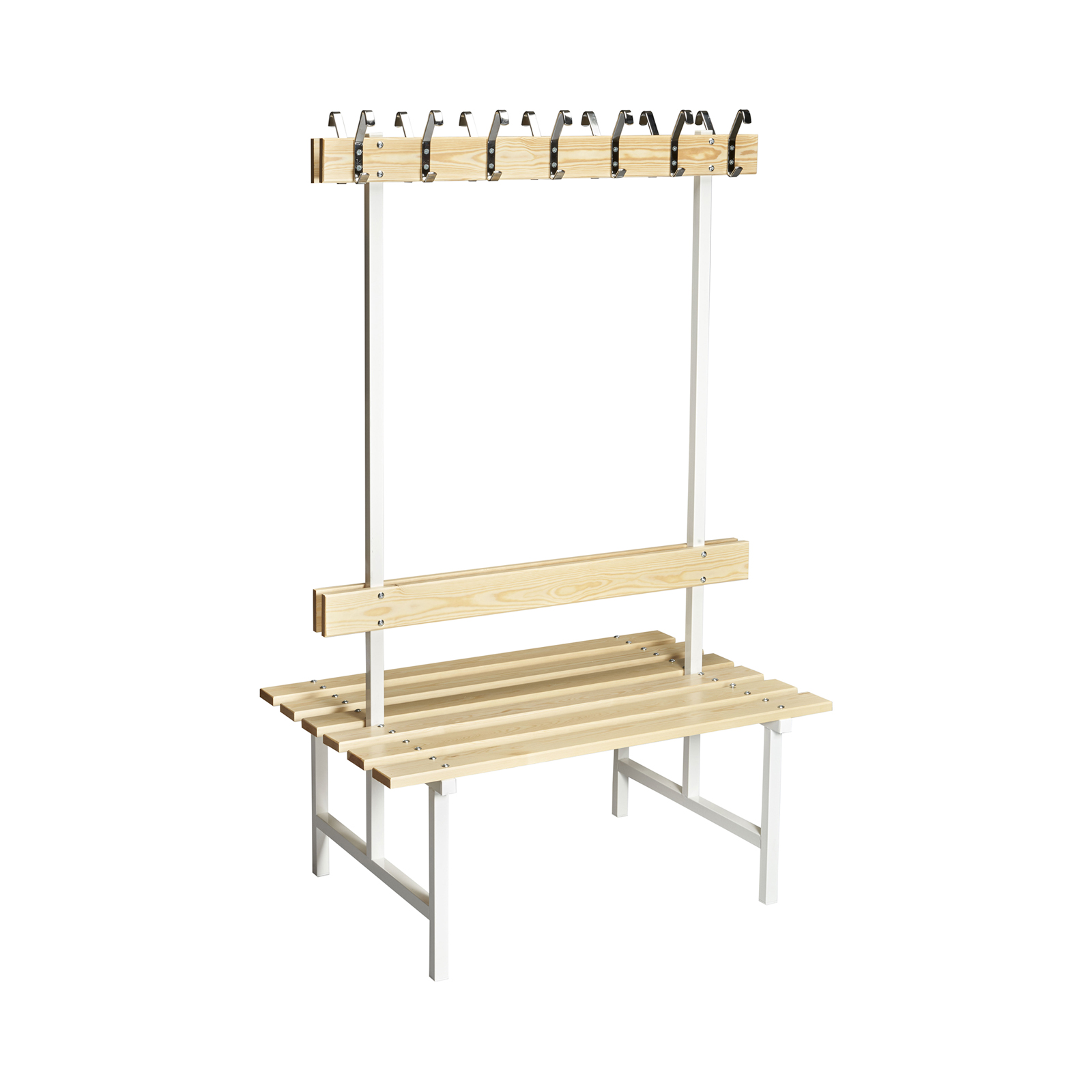 Wenn eine normale Sitzbank Ihre Bedürfnisse nicht vollständig befriedigen kann, gibt es die Möglichkeit, eine doppelseitige Variante zu wählen, die sowohl Haken als auch eine Rückenlehnen hat. Die doppelseitige Sitzbank eignet sich für all jene, die an Ihrem Sitzplatz mehrere Funktionen haben möchten. Die verschiedenen verfügbaren Optionen finden Sie in unseren Produktinformationen.