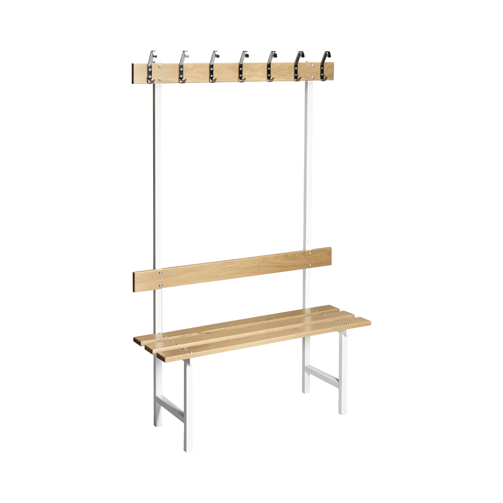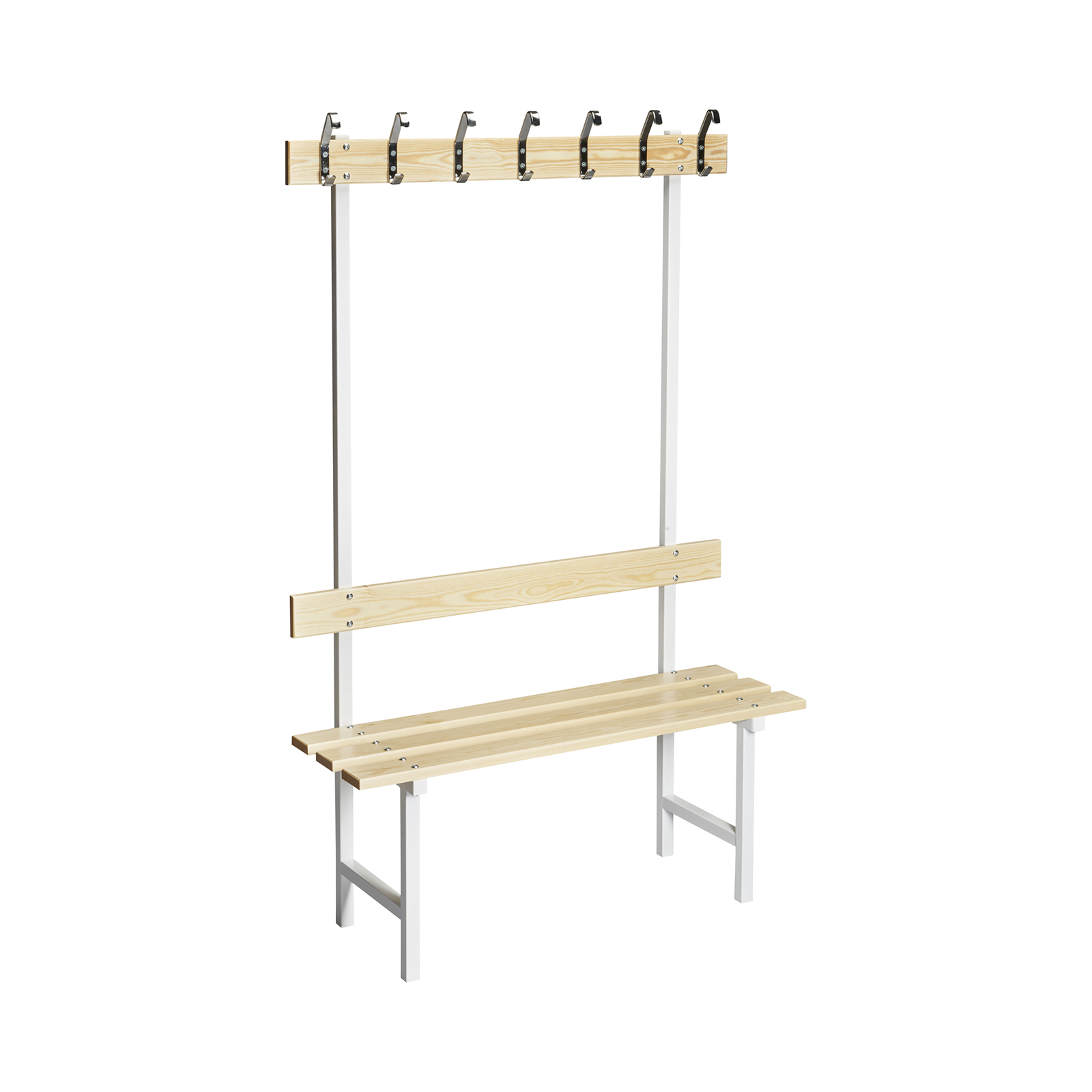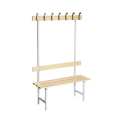 Wenn eine normale Sitzbank Ihre Bedürfnisse nicht vollständig befriedigen kann, gibt es die Möglichkeit, eine einseitige Variante zu wählen, die sowohl Haken als auch eine Rückenlehnen hat. Die einseitige Sitzbank eignet sich für all jene, die an Ihrem Sitzplatz mehrere Funktionen haben möchten. Die verschiedenen verfügbaren Optionen finden Sie in unseren Produktinformationen. HINWEIS! Die Bilder oben zeigen, wie die Bank in der Breite 1050 mm und 1500 mm aussieht.