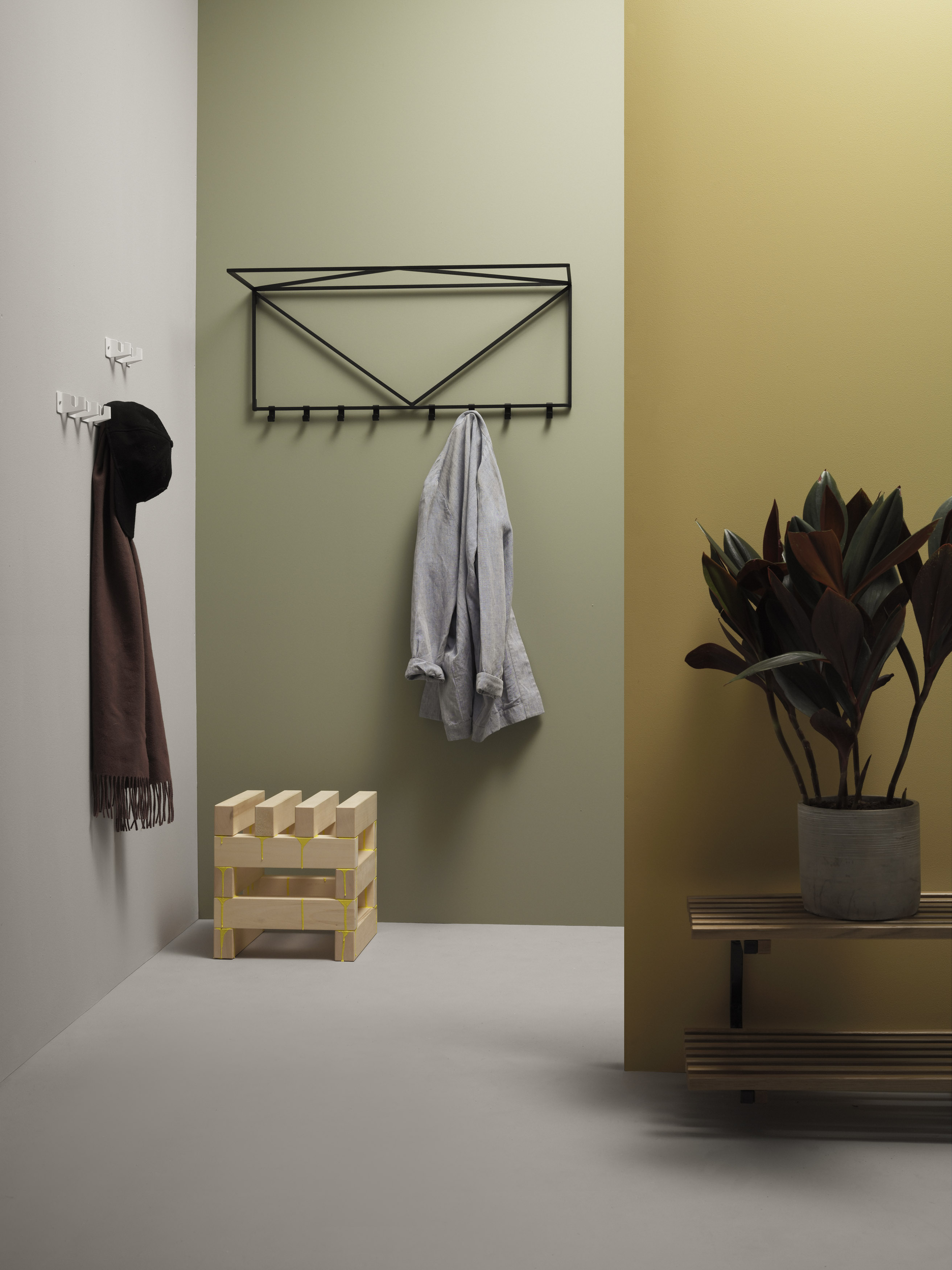 Robust shoe rack with shelves in lacquered wooden bars. Available in both free-standing and wall-mounted designs in various widths. NOTE! The picture above shows what the shoe rack looks like in width 1000 mm.