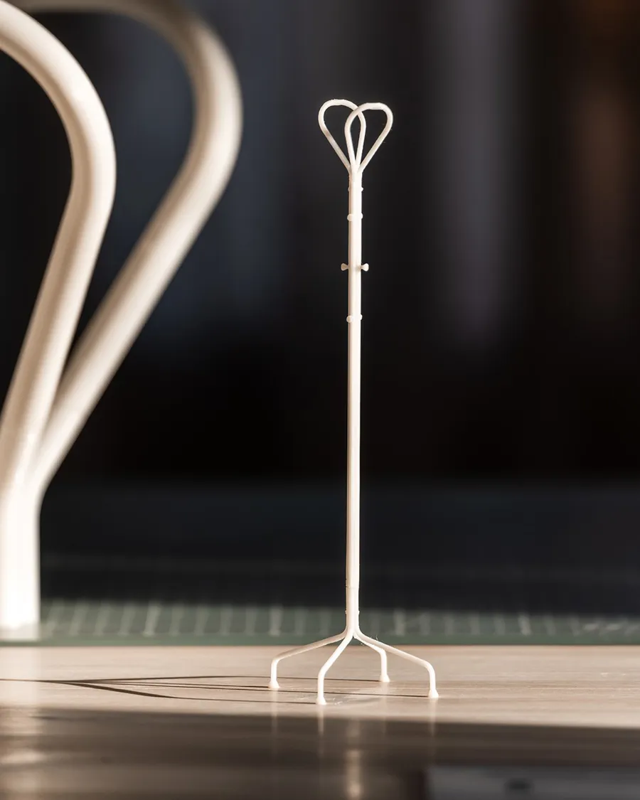 — The hat rack is such an iconic and recognizable item with its simple, straightforward form, made from bent metal tubes and a flat net.