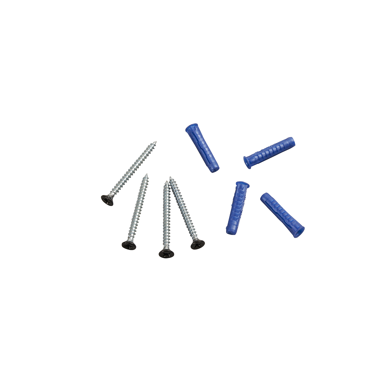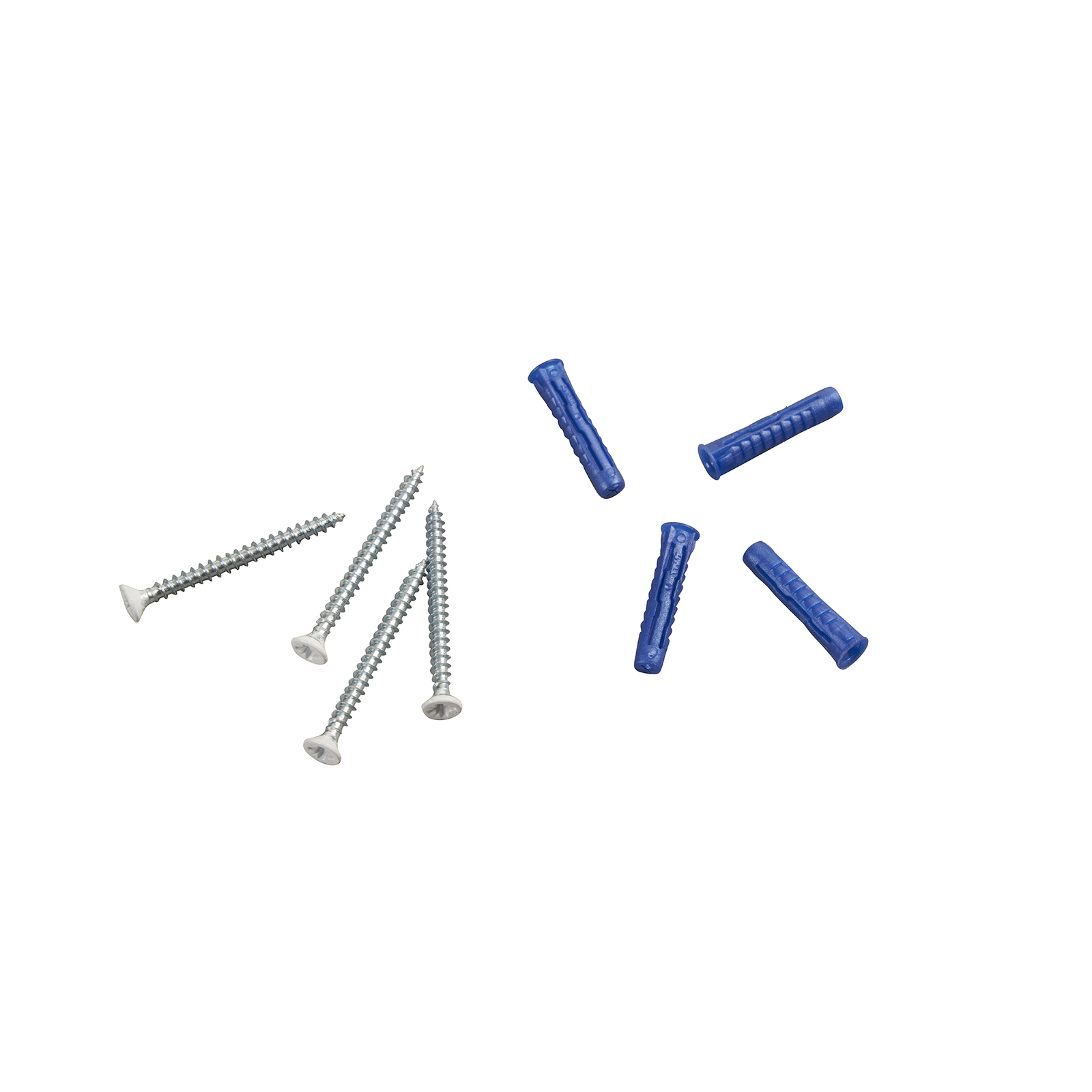 Available with black screw head, white screw head and silver screw head. It comes with a universal plug. The screw is 3.5*40 mm and the plug is 5.5*25 mm.