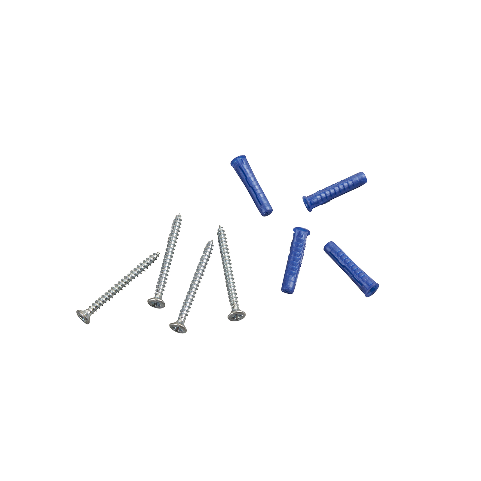 Set of screws for concrete, stone, plaster and wooden walls for hooks and hook strips. Available in different variants to suit your product.