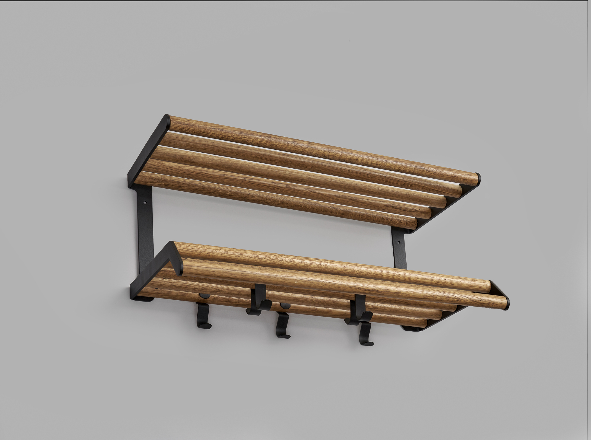The picture above shows what the hat rack looks like in width 1000 mm. What differs from width to width are the number of hooks.