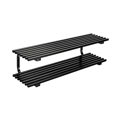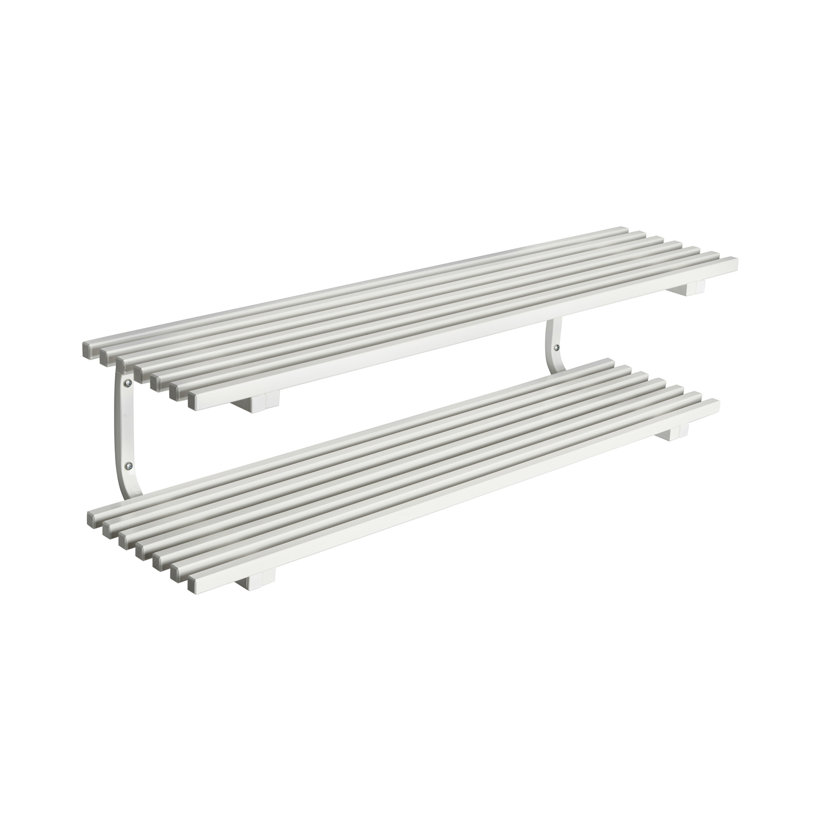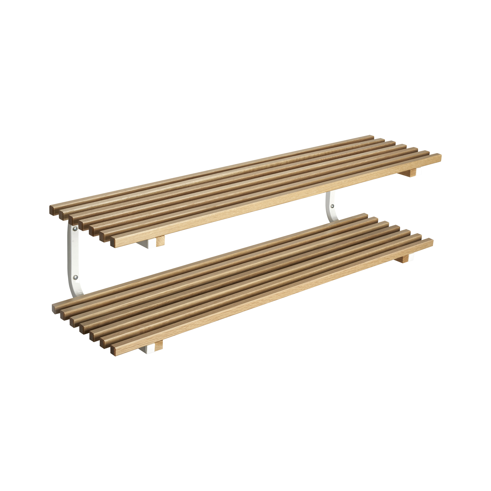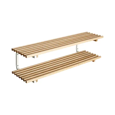 Robust shoe rack with shelves in lacquered wooden bars. Available in both free-standing and wall-mounted designs in various widths. NOTE! The picture above shows what the shoe rack looks like in width 1000 mm.