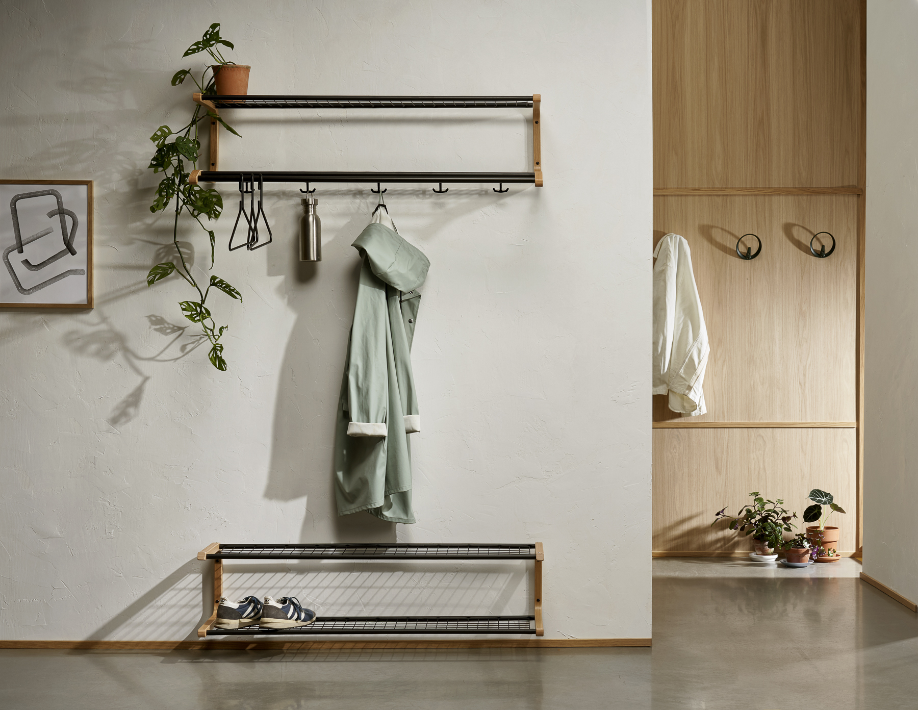 When Joel Karlsson was asked to design a new hook, he thought about how to modify the traditional coat hook to stop garments without hangers from getting a ‘hook mark’ in the back. “We wanted to create a product that ‘spares’ the garment the same way a hanger does,” says Karlsson about his innovative hook provided with a halo. The Gloria is the most functional of our hooks and can substitute for a hat rack where there is no room in the hallway for a large piece of furniture. You can several jackets on it, put your gloves and cap behind, and use a hanger too.