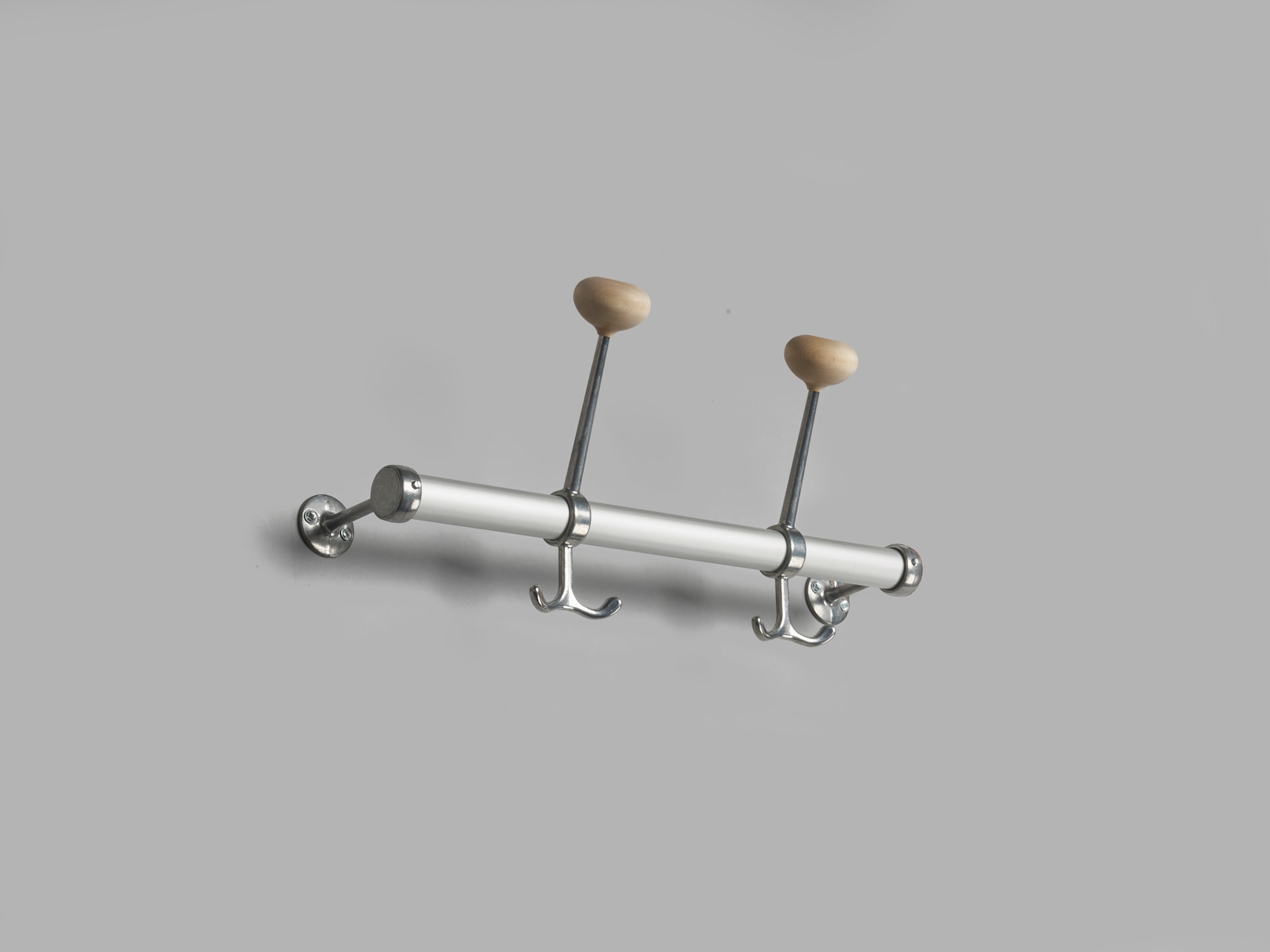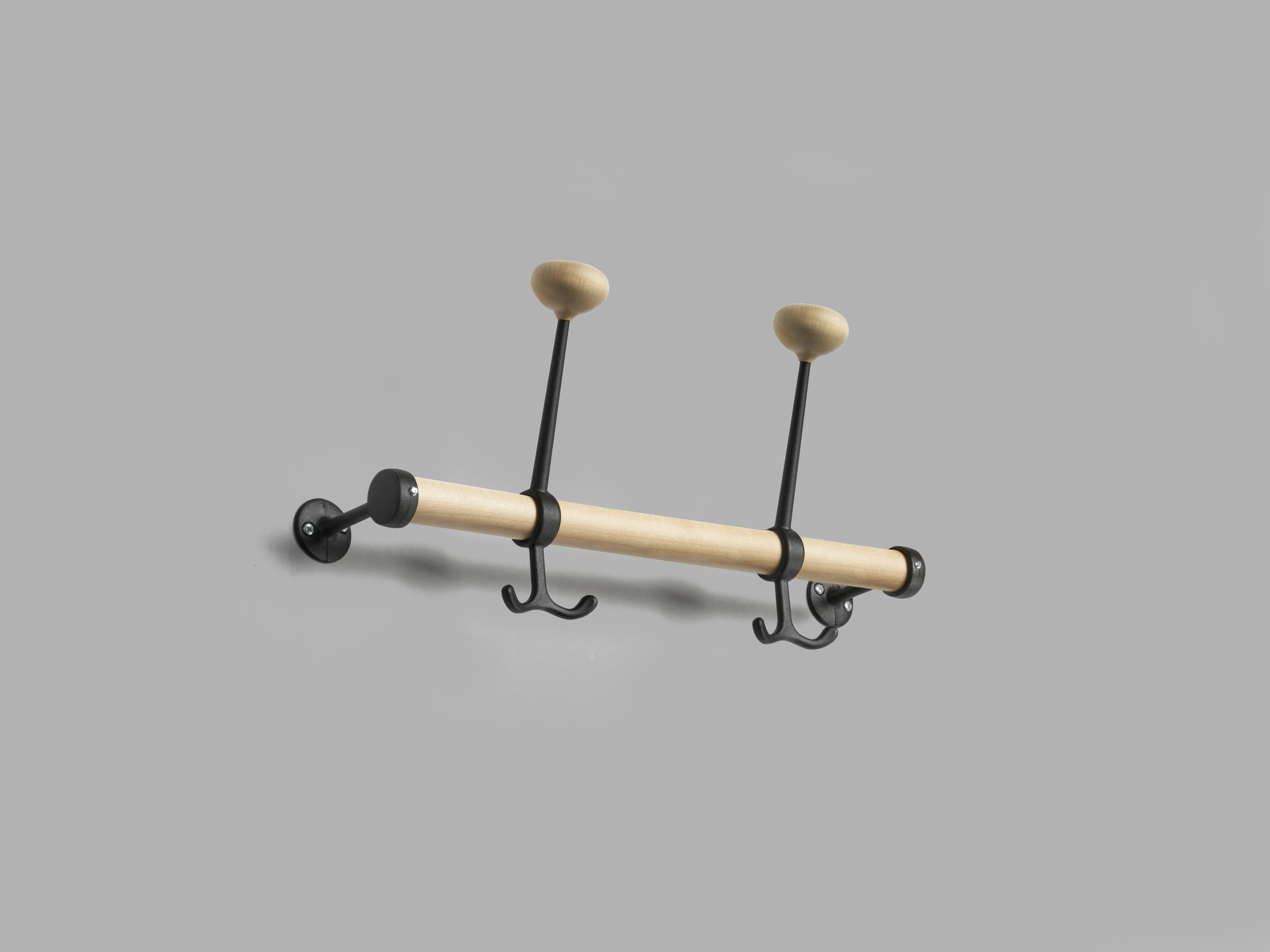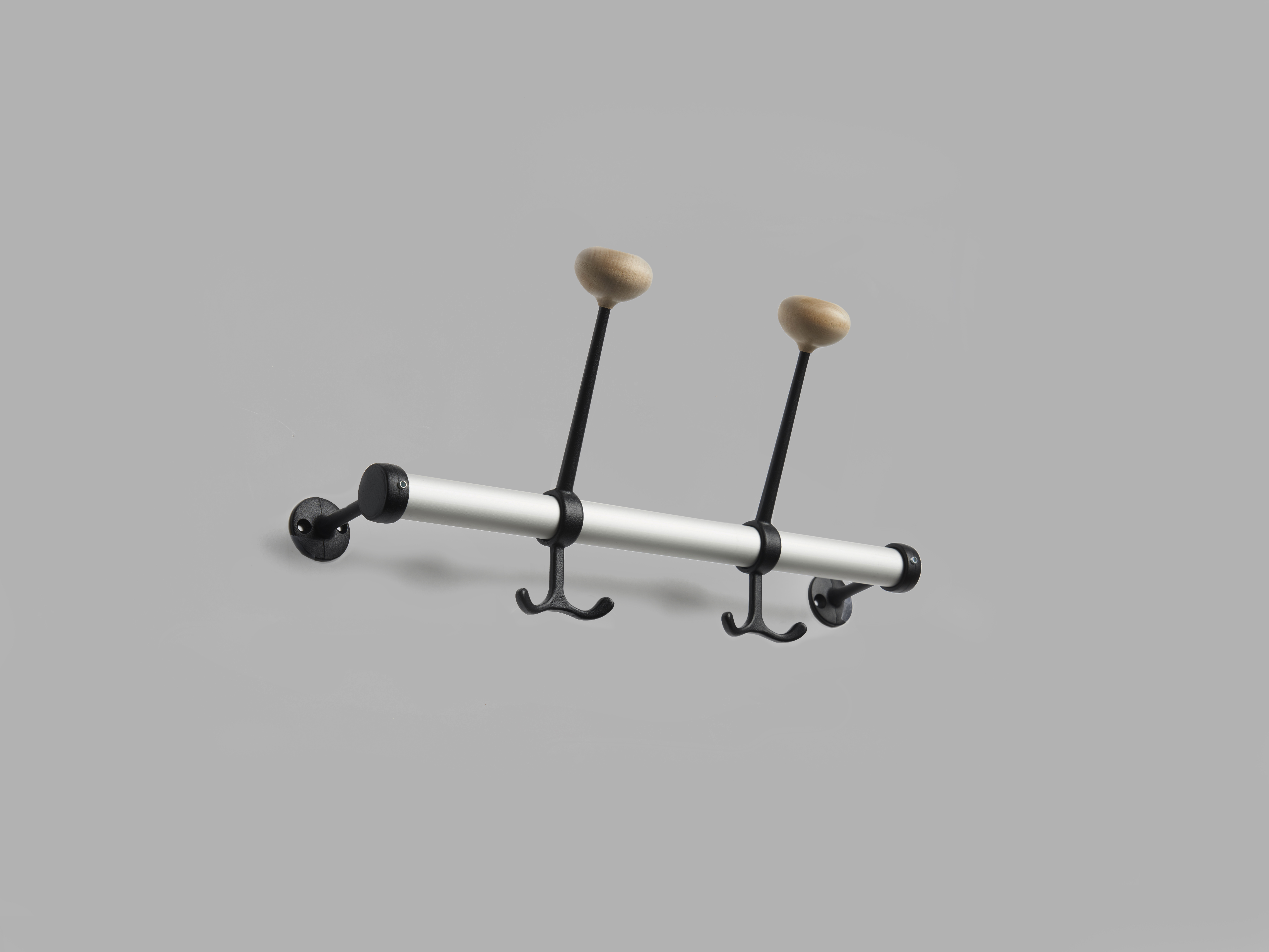 En enkel knaggrekke for mindre rom. Rør av anodisert aluminium eller krom og rundstav i klarlakkert bjørk eller eik. Veggfestene og knaggene er produsert i aluminium med knott i bjørk eller eik. Gustav ble til for å ta vare på restene etter avkappede rundstaver til Nostalgi-hyllen.