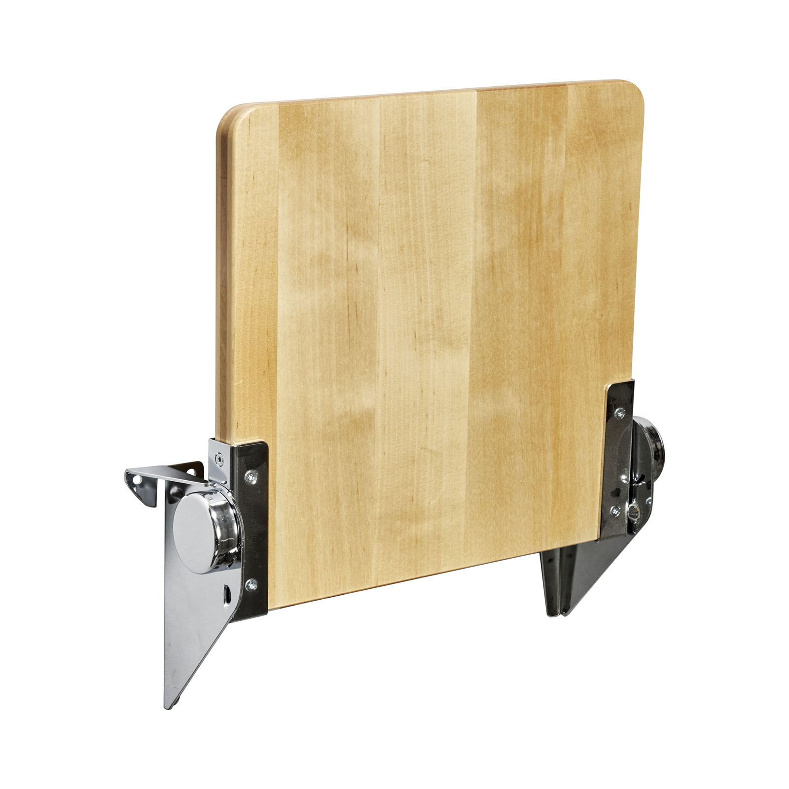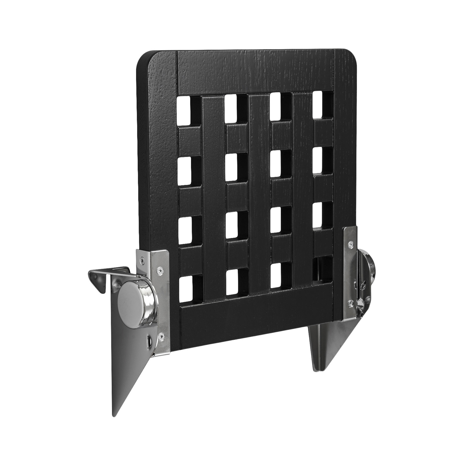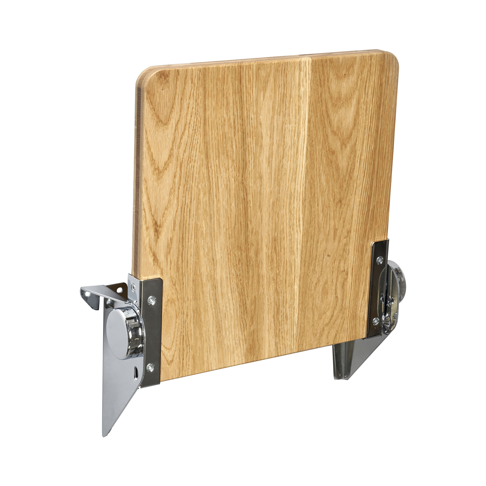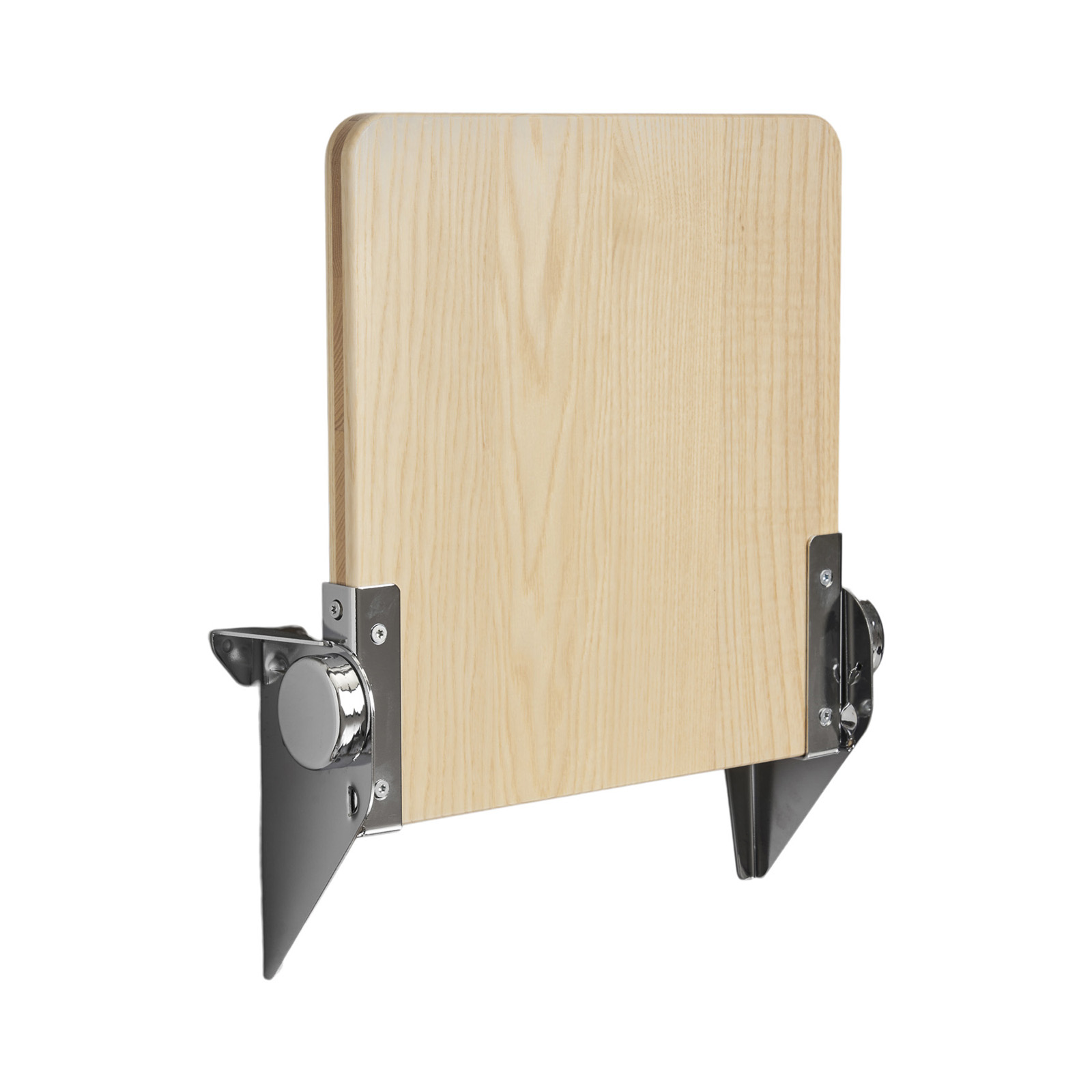 Jaxon är en klassisk fällsits i massivt trä och monteras upp som en väggstol med beslag av valsat, glansförkromat stål.