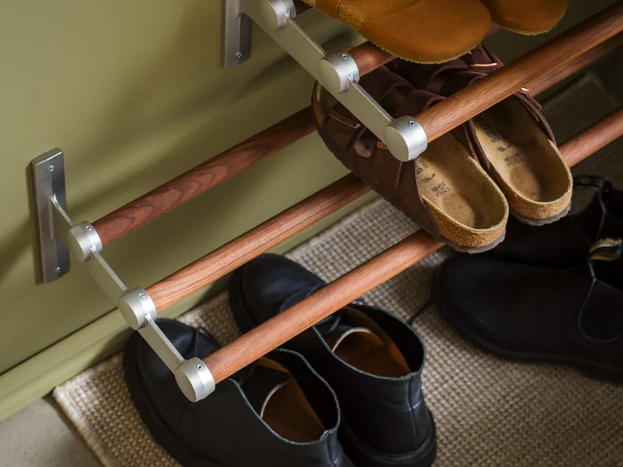If floor space is at a premium, take your shoe storage vertical with wall-mounted racks. Opt for sleek, streamlined designs that blend seamlessly with your decor. Scandinavian-style racks often feature simple, geometric shapes and light wood or metal finishes that contribute to an airy, uncluttered look. Install them at a height that's easily accessible for all family members.
