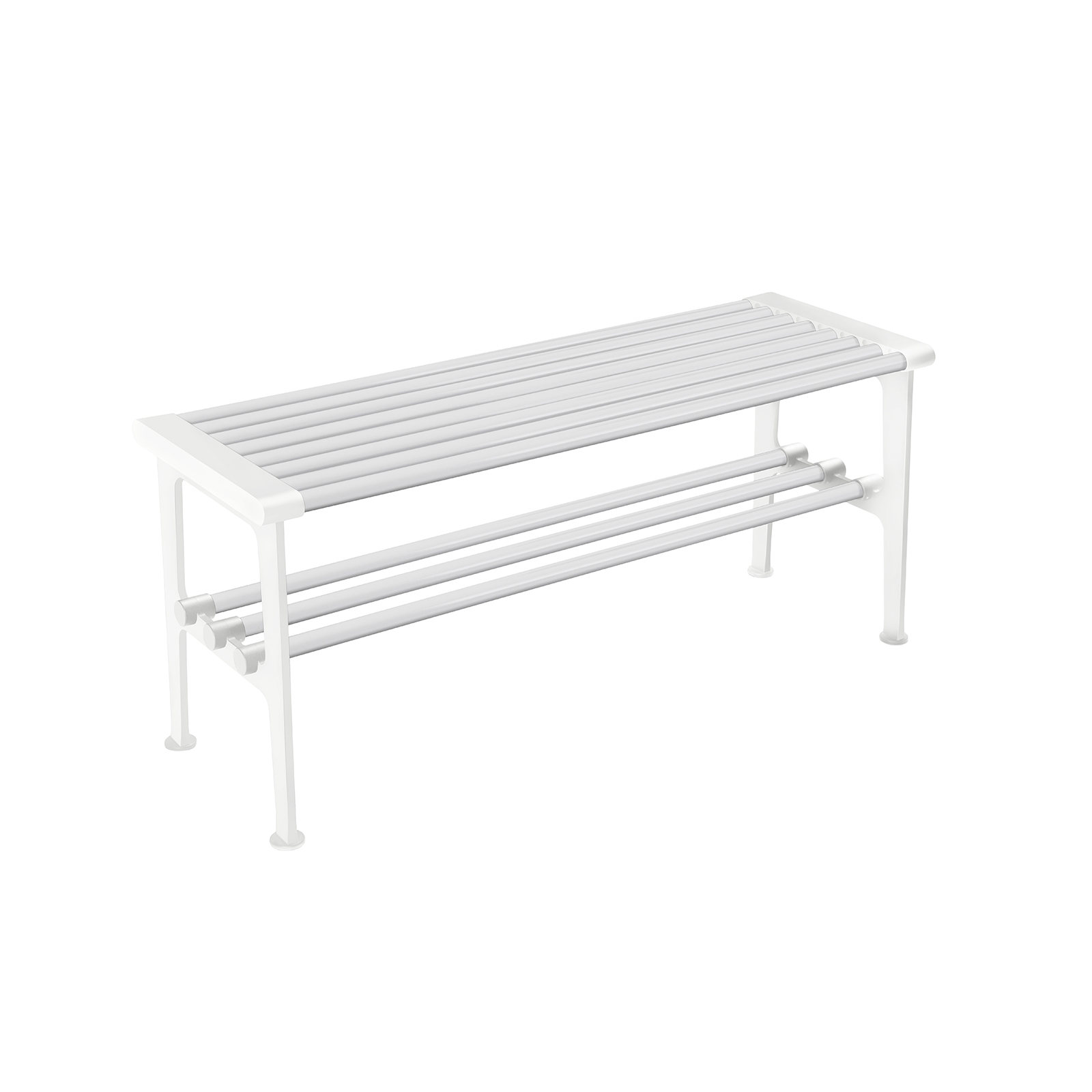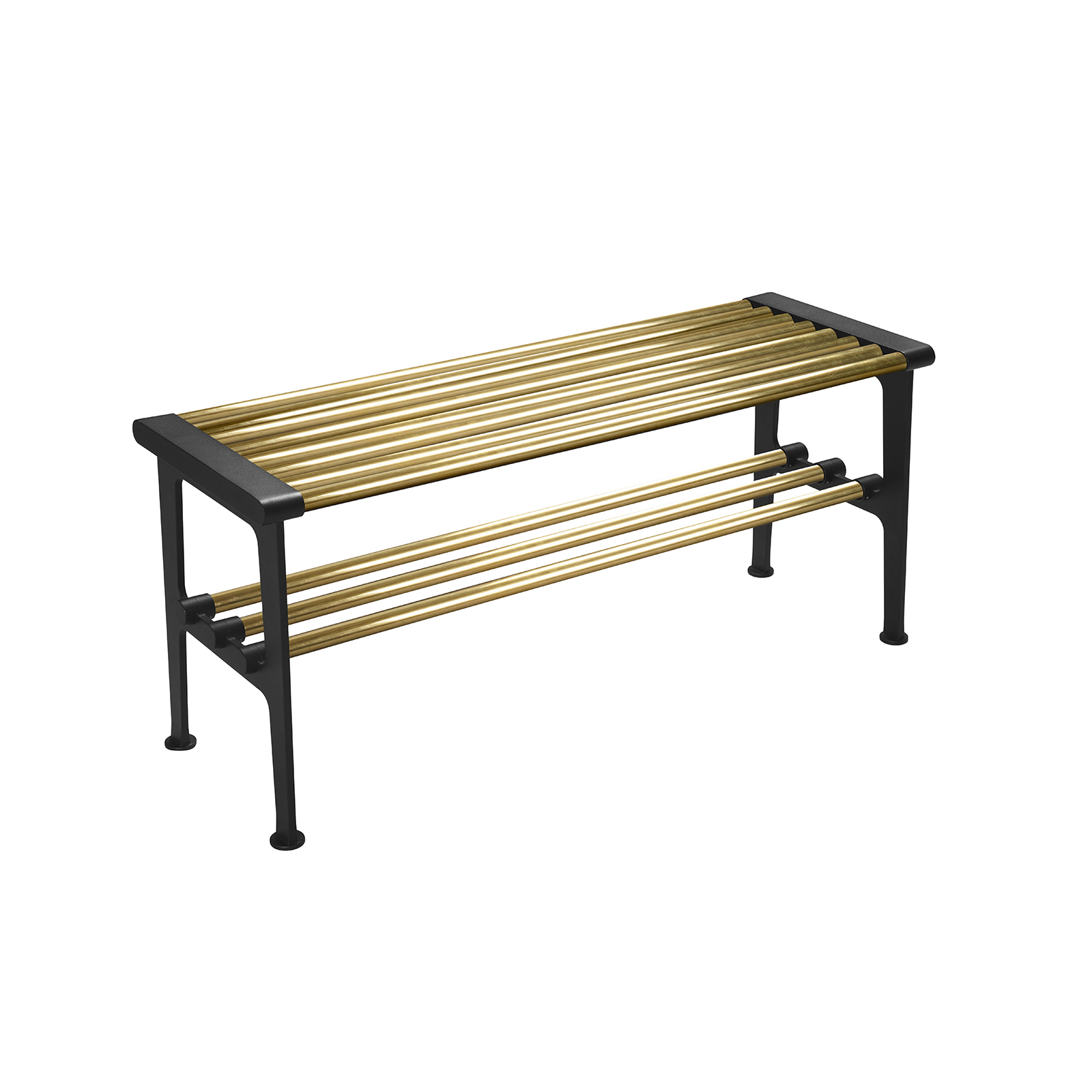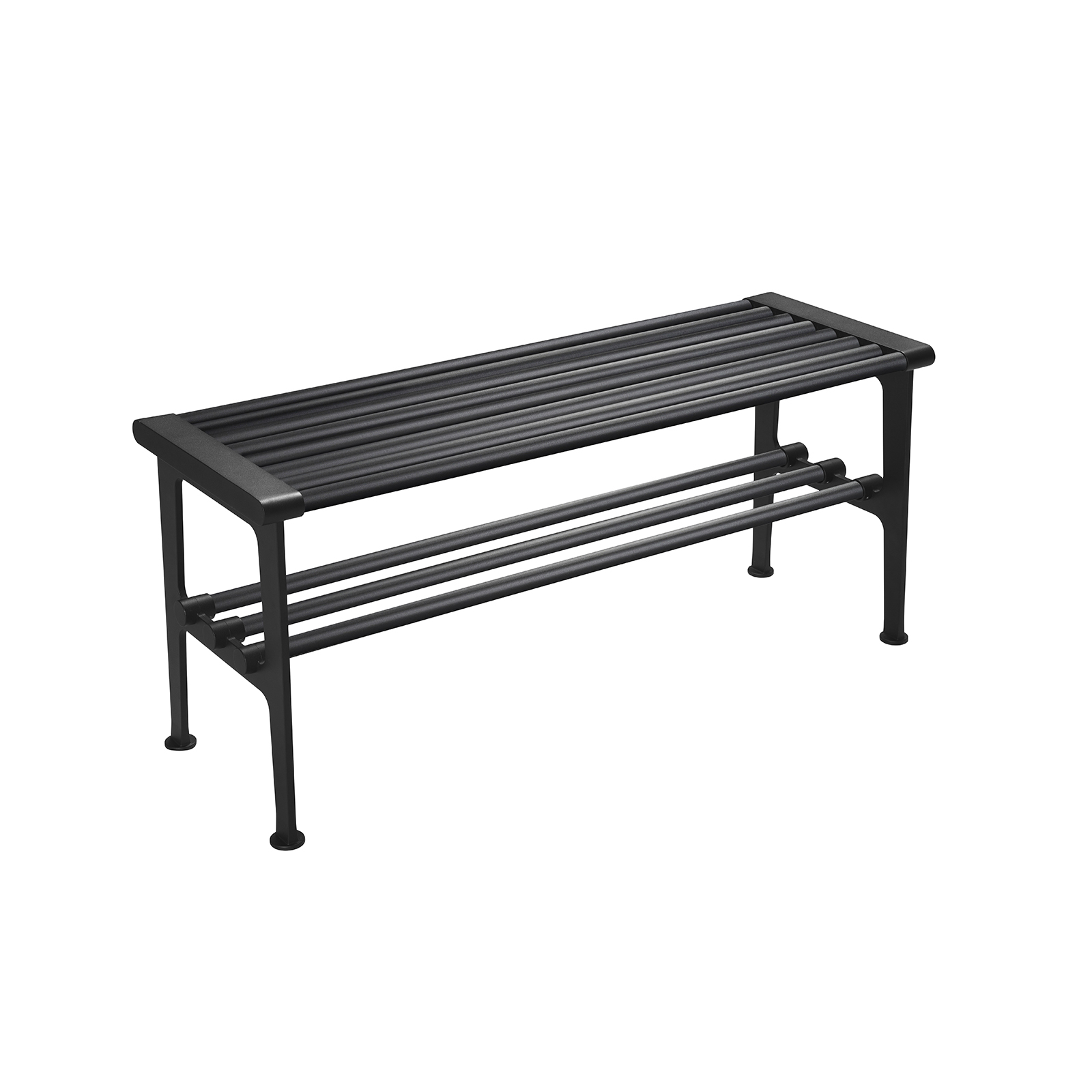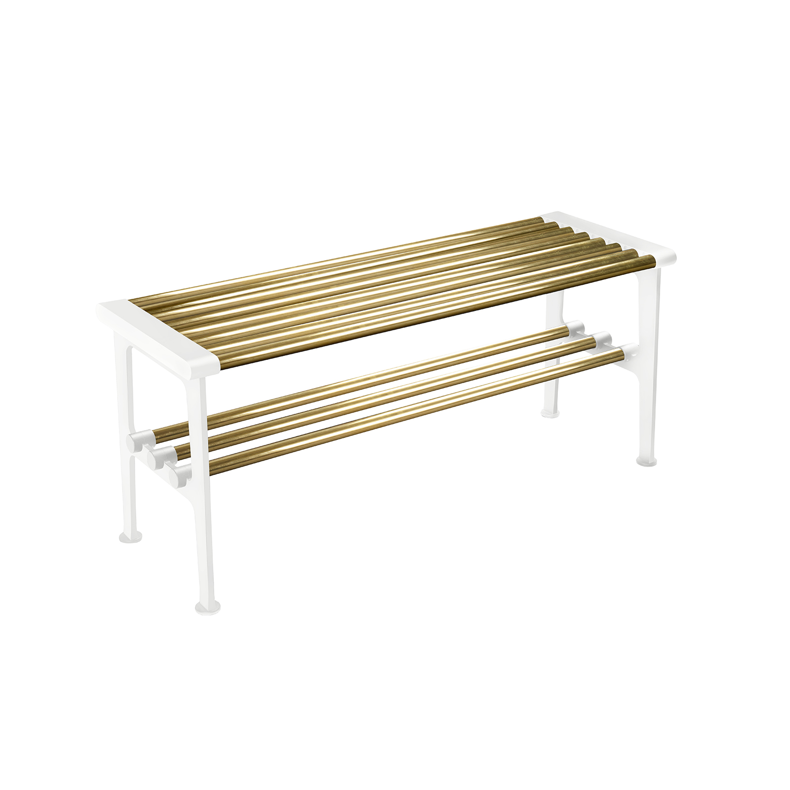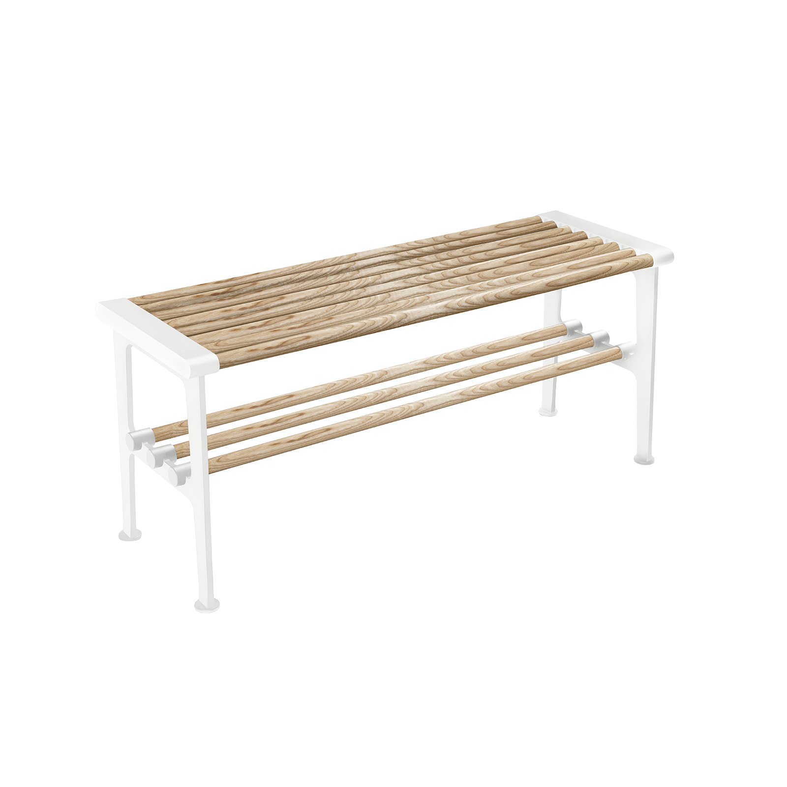 It took 87 years for the Nostalgi rack to get a bench in the product family. Even so, the bench seems obvious as an addition to the product family. Inspired by the hat and shoe rack, Roger Persson has designed a flexible and sturdy product that extends indefinitely with the help of middle brackets. But it can also function as a free-standing shoe rack, a seat to tie your shoes on at the entrance, or even a combination of the two. As with the other Nostalgi products, the brackets are made of recycled aluminium, joined by metal or wooden bars.