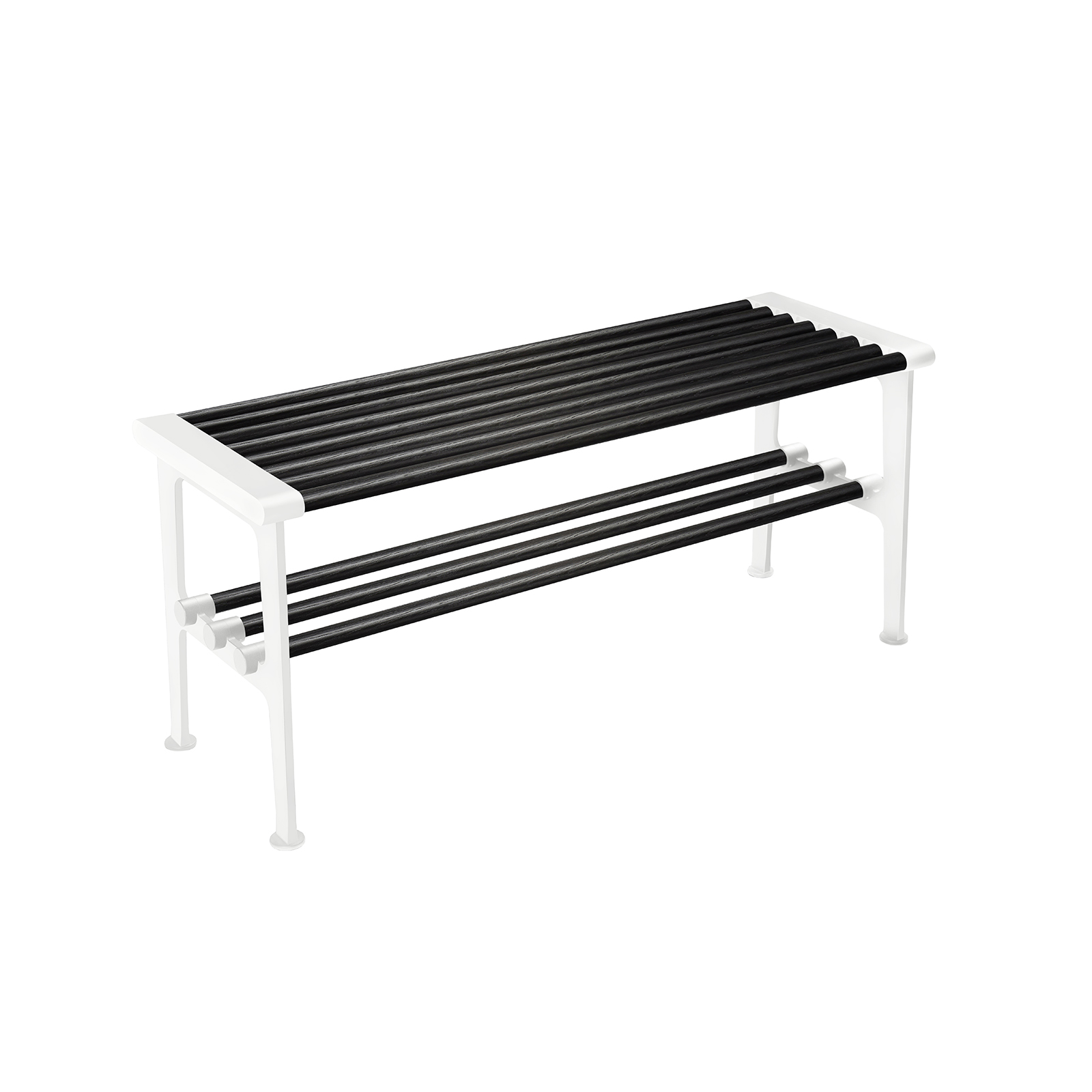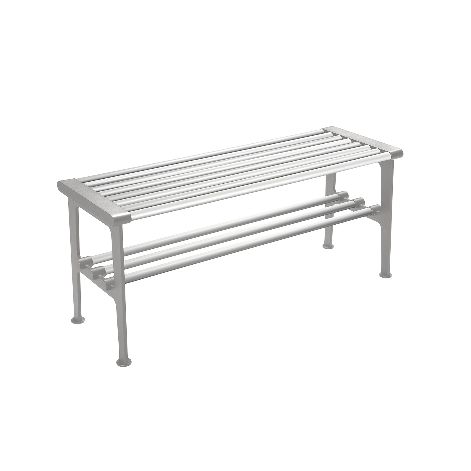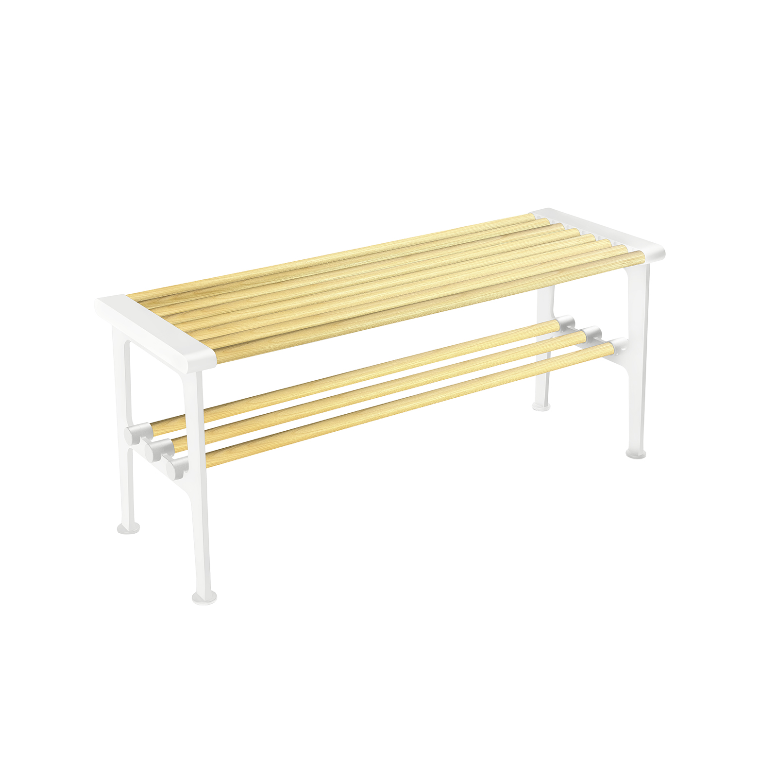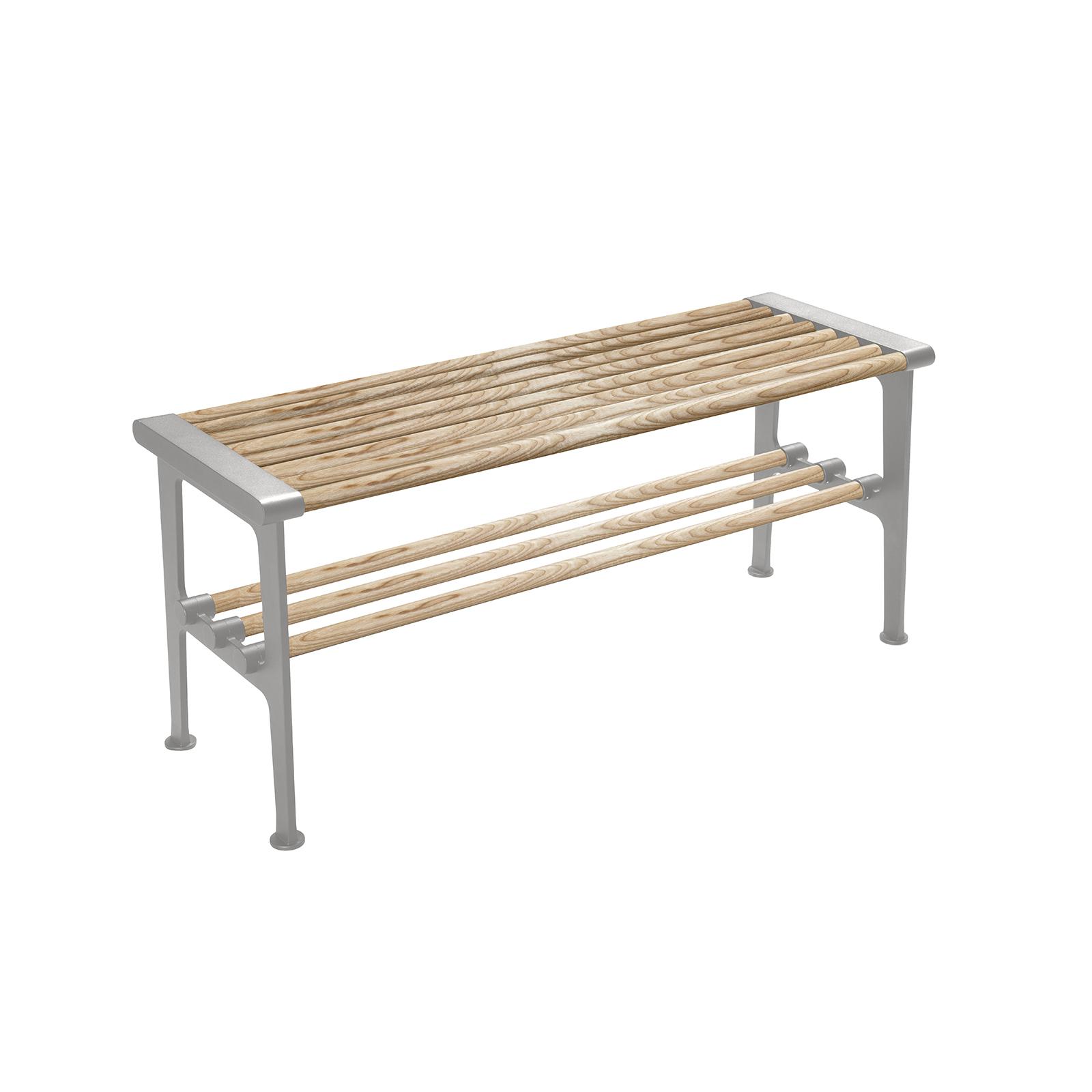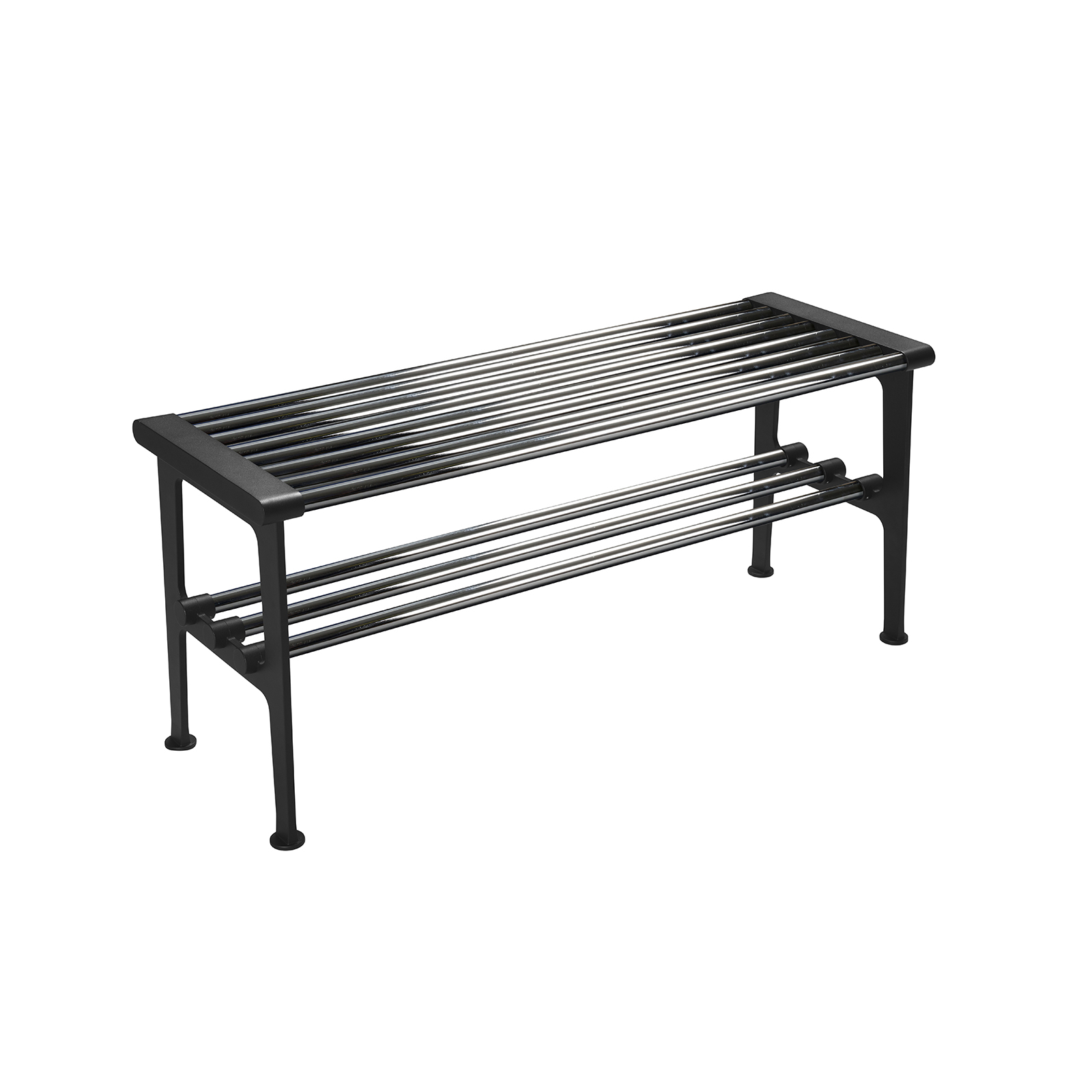 It took 87 years for the Nostalgi rack to get a bench in the product family. Even so, the bench seems obvious as an addition to the product family. Inspired by the hat and shoe rack, Roger Persson has designed a flexible and sturdy product that extends indefinitely with the help of middle brackets. But it can also function as a free-standing shoe rack, a seat to tie your shoes on at the entrance, or even a combination of the two. As with the other Nostalgi products, the brackets are made of recycled aluminium, joined by metal or wooden bars.