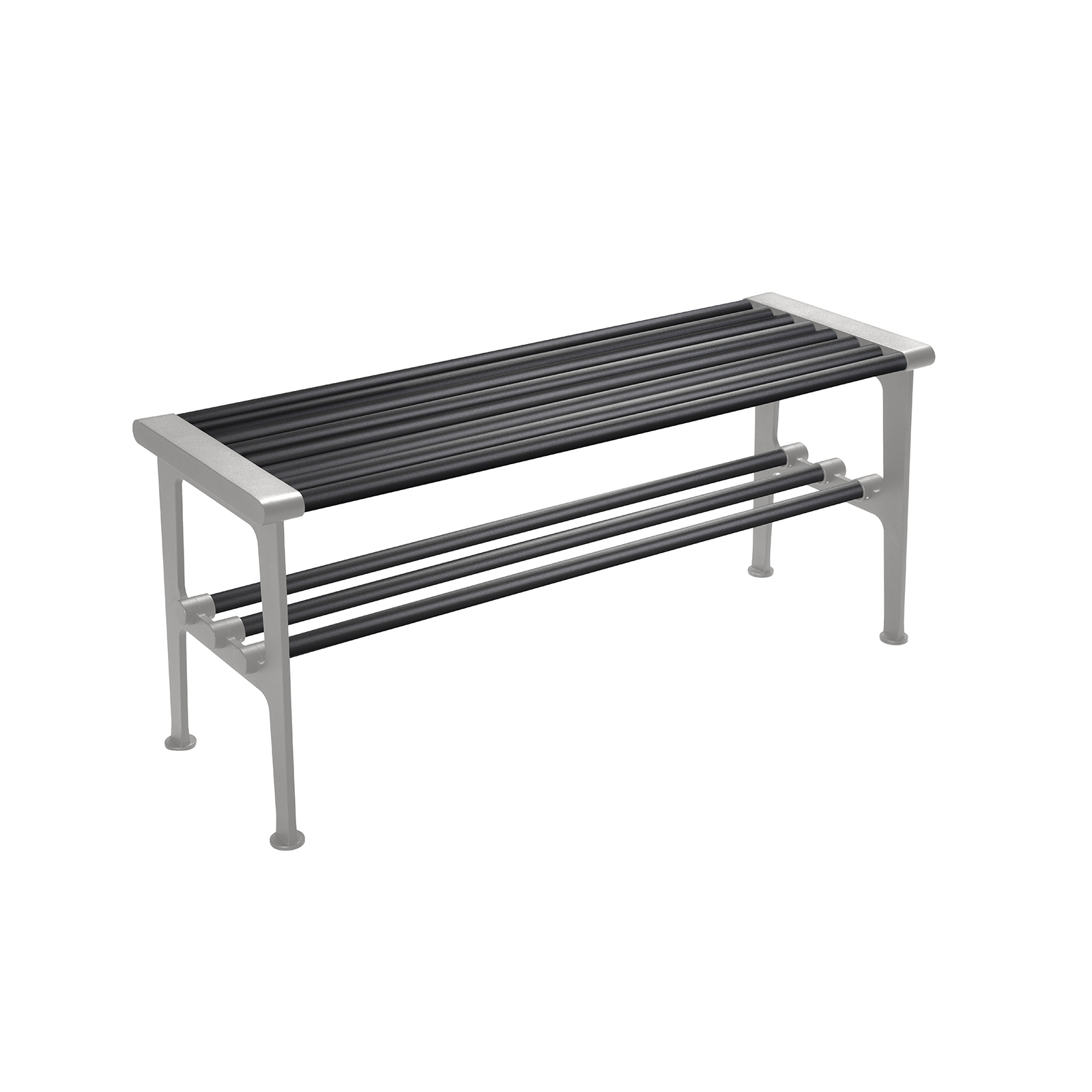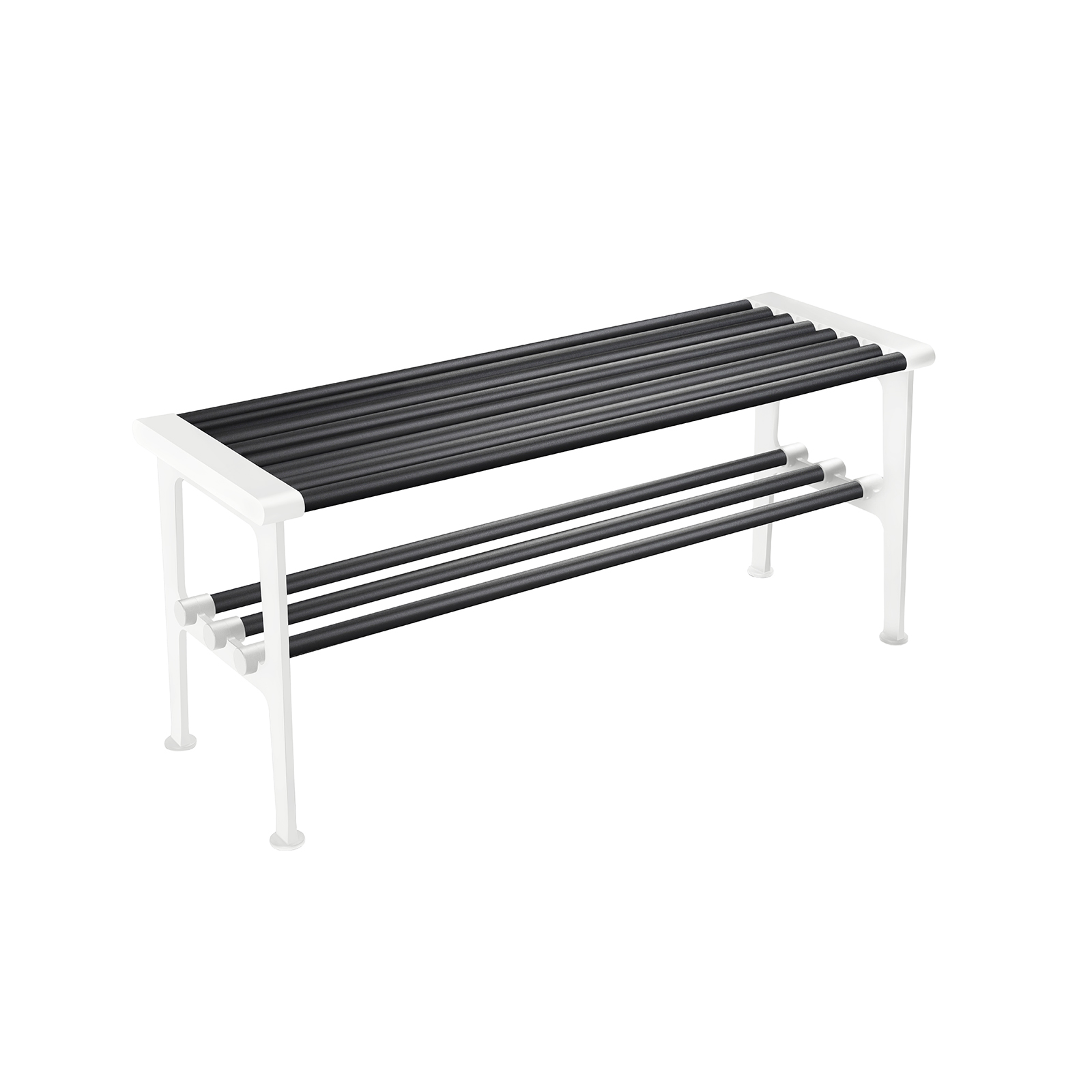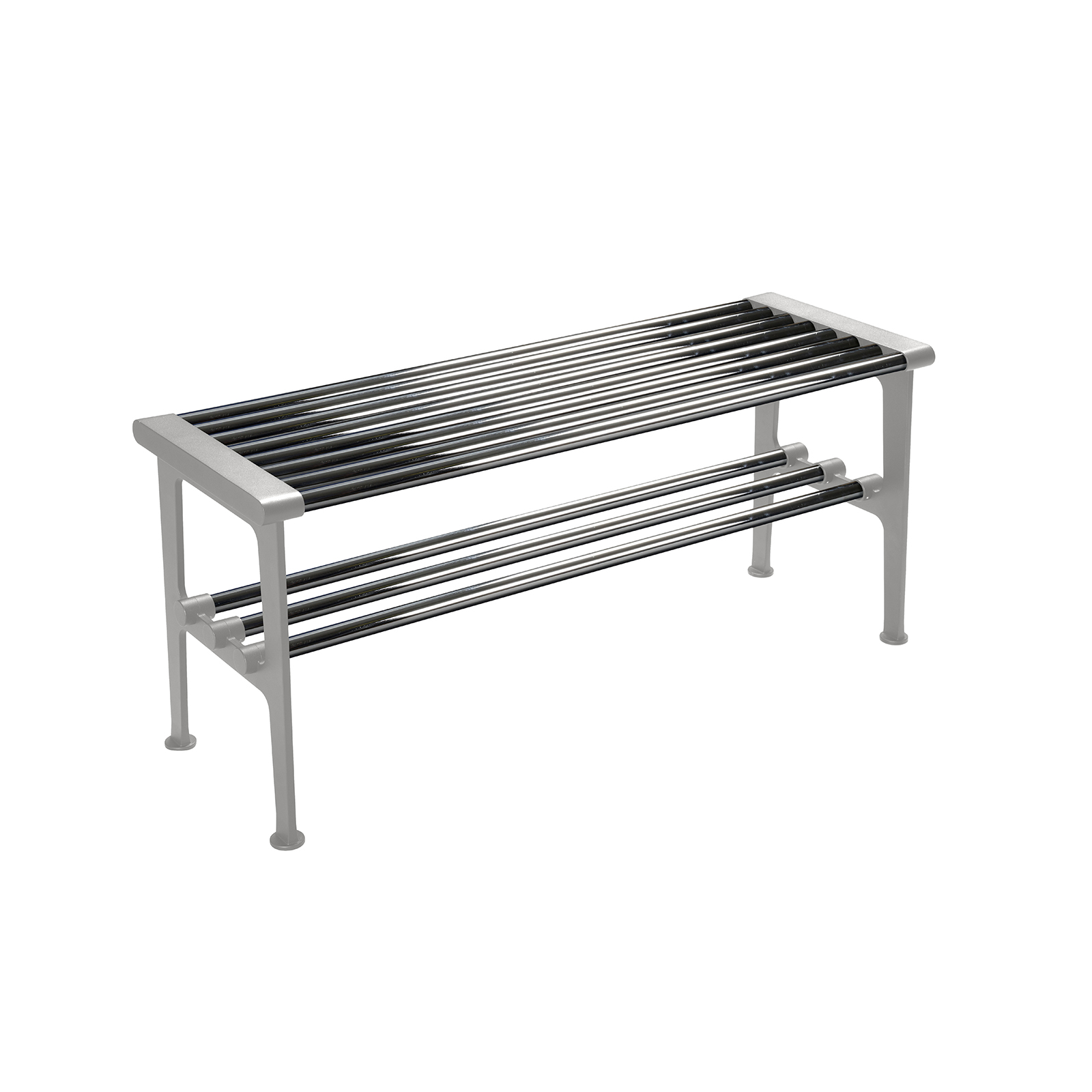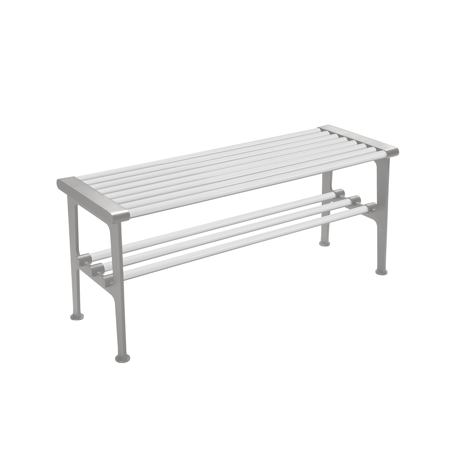 It took 87 years for the Nostalgi rack to get a bench in the product family. Even so, the bench seems obvious as an addition to the product family. Inspired by the hat and shoe rack, Roger Persson has designed a flexible and sturdy product that extends indefinitely with the help of middle brackets. But it can also function as a free-standing shoe rack, a seat to tie your shoes on at the entrance, or even a combination of the two. As with the other Nostalgi products, the brackets are made of recycled aluminium, joined by metal or wooden bars.