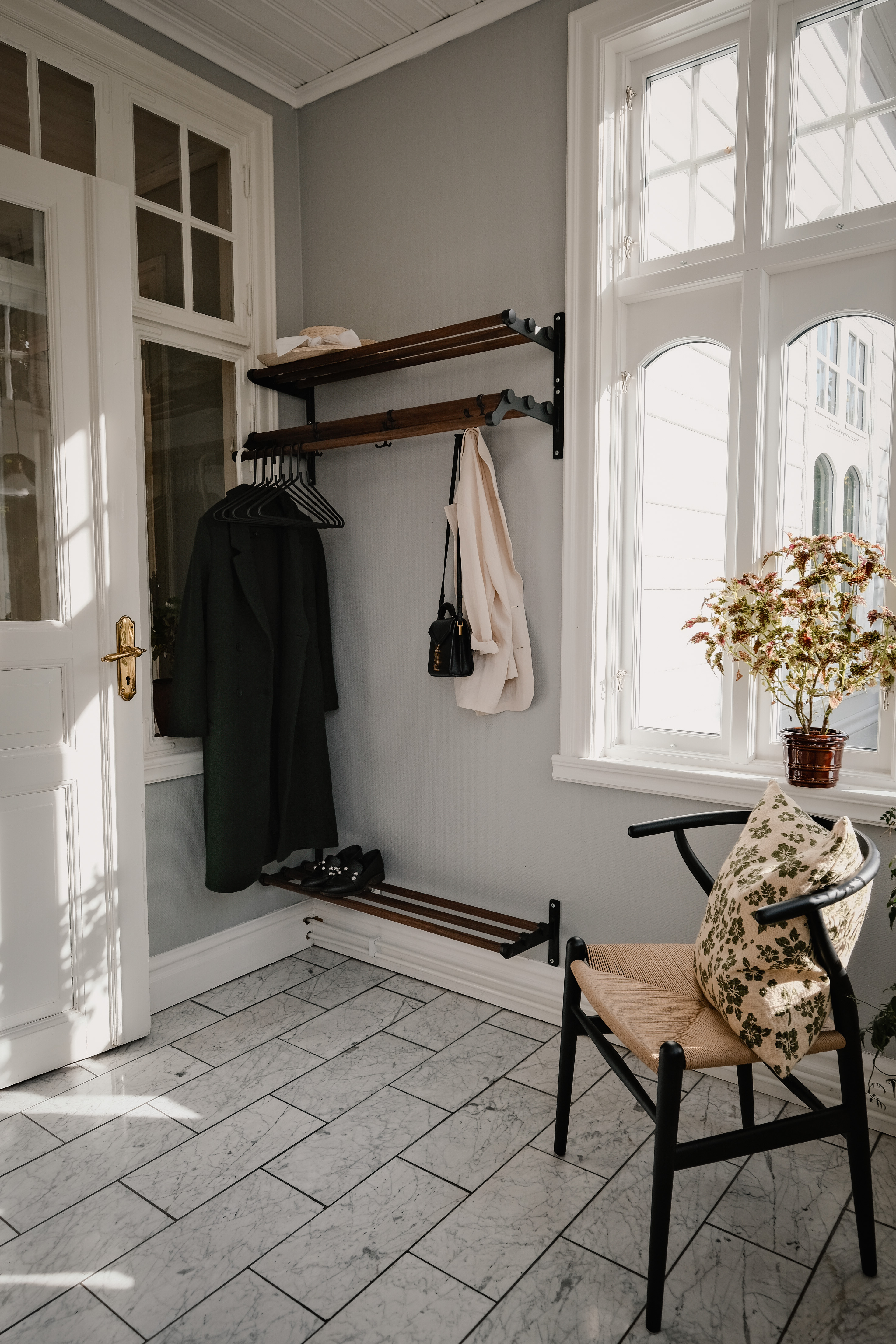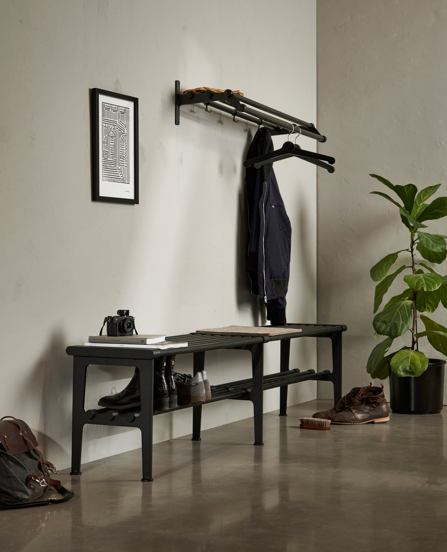 The hat rack Nostalgi 291 was designed in the 40’s. It became an appreciated alternative to the classic precursor, Nostalgi, after having received feedback from clients expressing a want for a hat rack with more depth and extra space for hangers. Some eighty years later the hat rack 291 is once again put into production. This time with an improved design. The hat rack works well together with the Nostalgi shoe rack and is perfect for those looking for a spacious rack with an extra bar for hangers but still wants a simple and classic design.